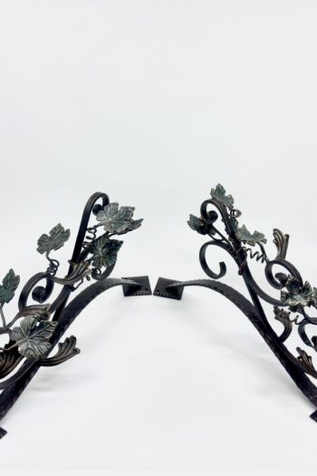 Hand Forged Iron Wall Art Scroll (54cm) Antique Copper & Green Patina Grapevine Motif