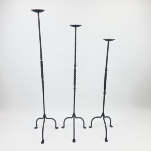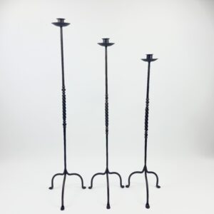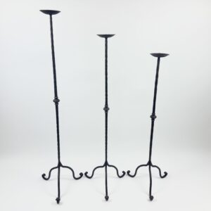 Add a touch of refined character to your living space with this Hand-Forged Iron Set. Standing at 112 cm, 102 cm, and 92 cm, this trio combines a sleek vertical profile with traditional ironwork details.