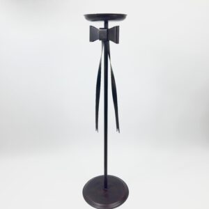 Hand Forged Iron Floor Pedestal 44.5″ (113cm) Artisanal Bronze Finish Bow Tie Ribbon Design Welcome Stand