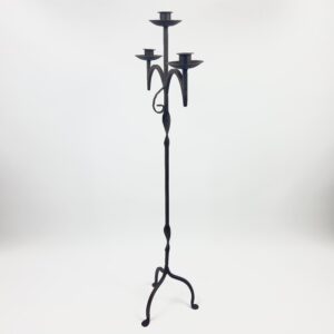 Hand Forged Iron Floor Candelabra 47.5″ (121cm) Antique Copper Patina 3-Arm Wide Base Stable Candle Holder Rustic Decor
