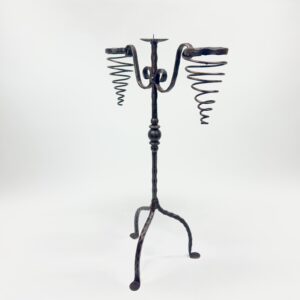 Hand Forged Iron Candelabra 26.5″ (67cm) Sculptural Spiral Single Candle Stand Antique Finish