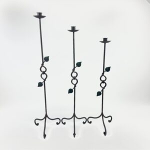 Hand Forged Iron Candelabra Set of 3 (91-111cm) Antique Copper Finish Floor Standing Sculpted Twist & Leaf Node Estate Set