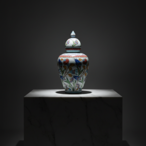 Handmade Ceramic “Kupecik” Ginger Jar (20cm) – Classic Iznik Tulip & Carnation Pattern – Lidded Home Decor