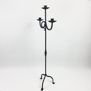 Hand Forged Iron Candelabra 48″ (123cm) Antique Copper or Gold Patina 3-Arm Lily Cup Candle Holder Rustic Wedding Decor