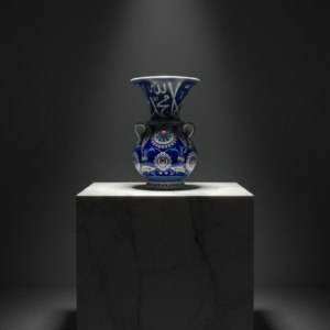 Handmade Ceramic Kandil Vase (50cm) Cobalt Blue Calligraphy Triple Handled Form
