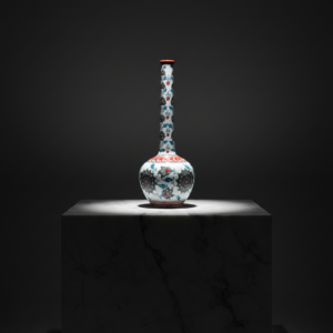 Handmade Ceramic Long Neck Vase (25cm) – Grey Lotus & Red Shoulder – Elegant Bottle Form