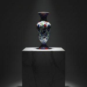 Handmade Ceramic Vase (30cm) – Red Carnation & Blue Saz Leaf Pattern – Classic Iznik Floral Vase