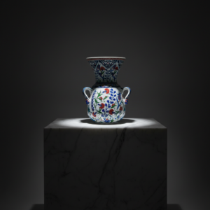 Handmade Ceramic “Kandil” Vase (30cm) Authentic Ottoman Oil Lamp with Triple Handles – Blue & White Urn Centerpiece