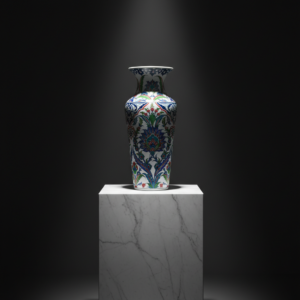 Handmade Ceramic Palace Vase (50cm) Imperial Blue Rumi Panel Pattern