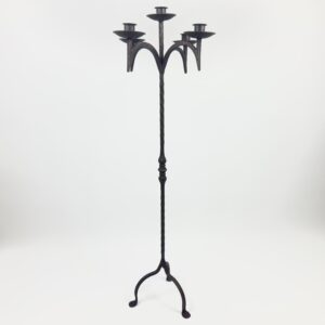 Hand Forged Wrought Iron Floor Candelabra 50″ (127cm) Antique Copper Patina 5-Arm Candle Holder Gothic Medieval Church Decor