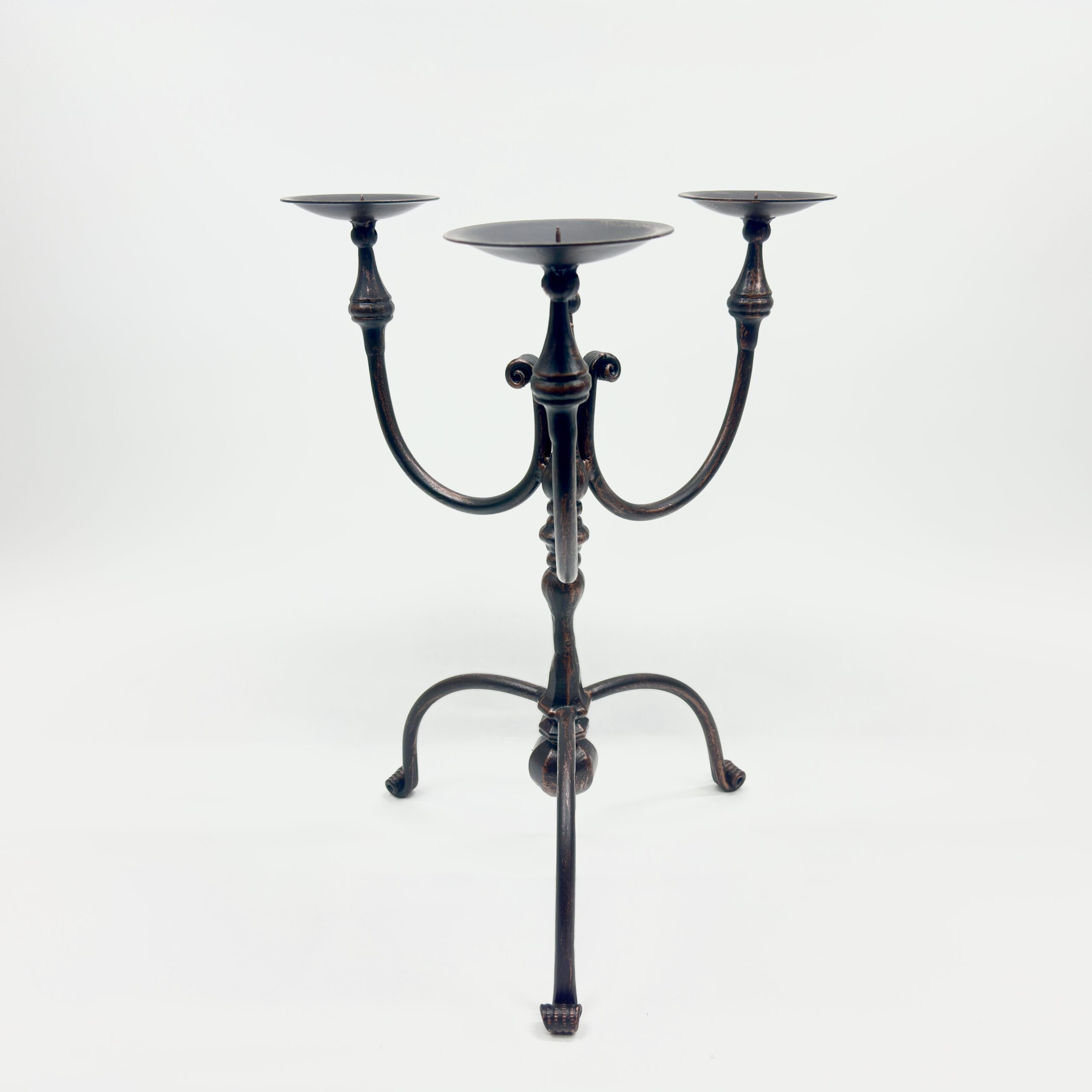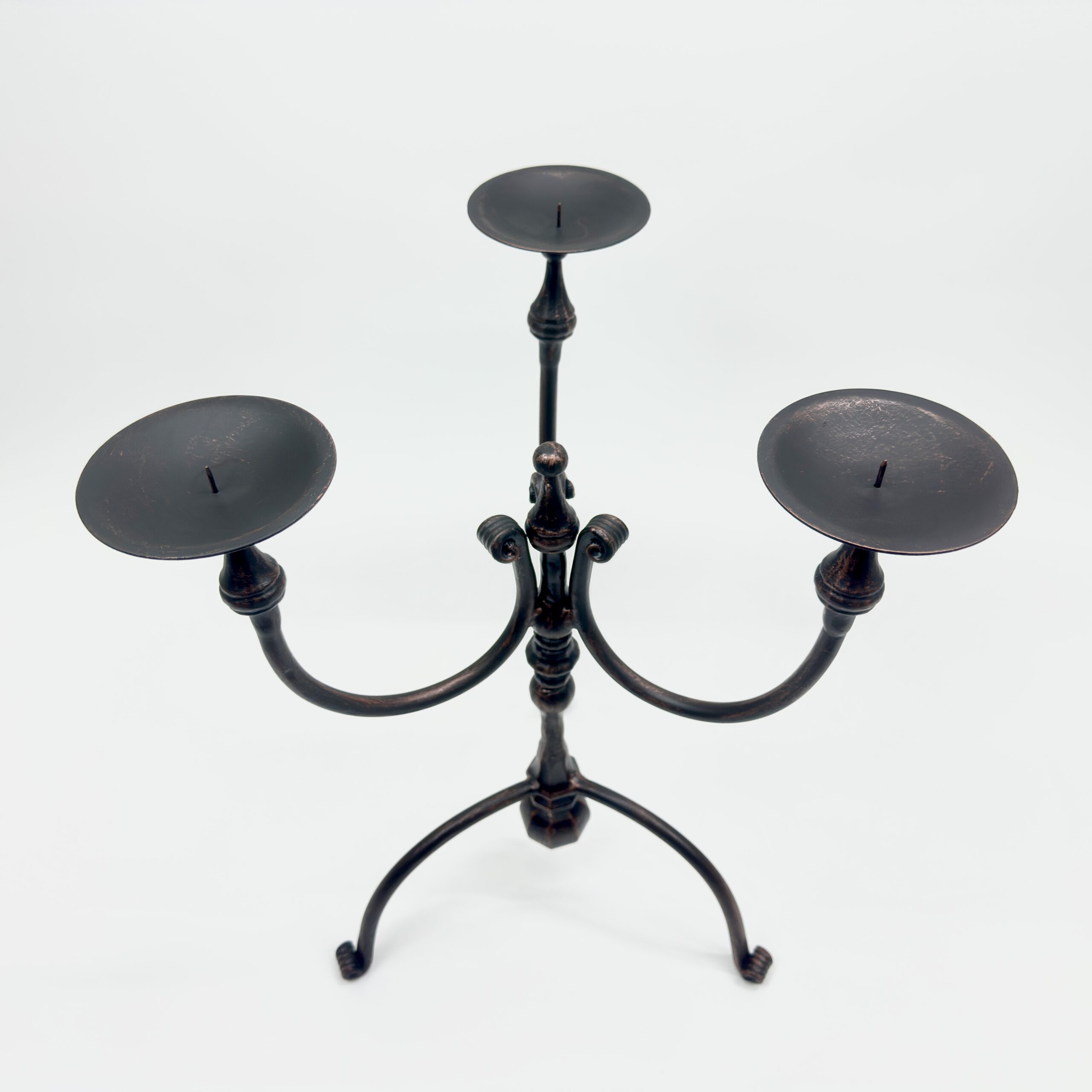 Hand Forged Iron Candelabra 19.5″ (50cm) Antique Copper Finish Wide & Conversation Friendly Tabletop Centerpiece