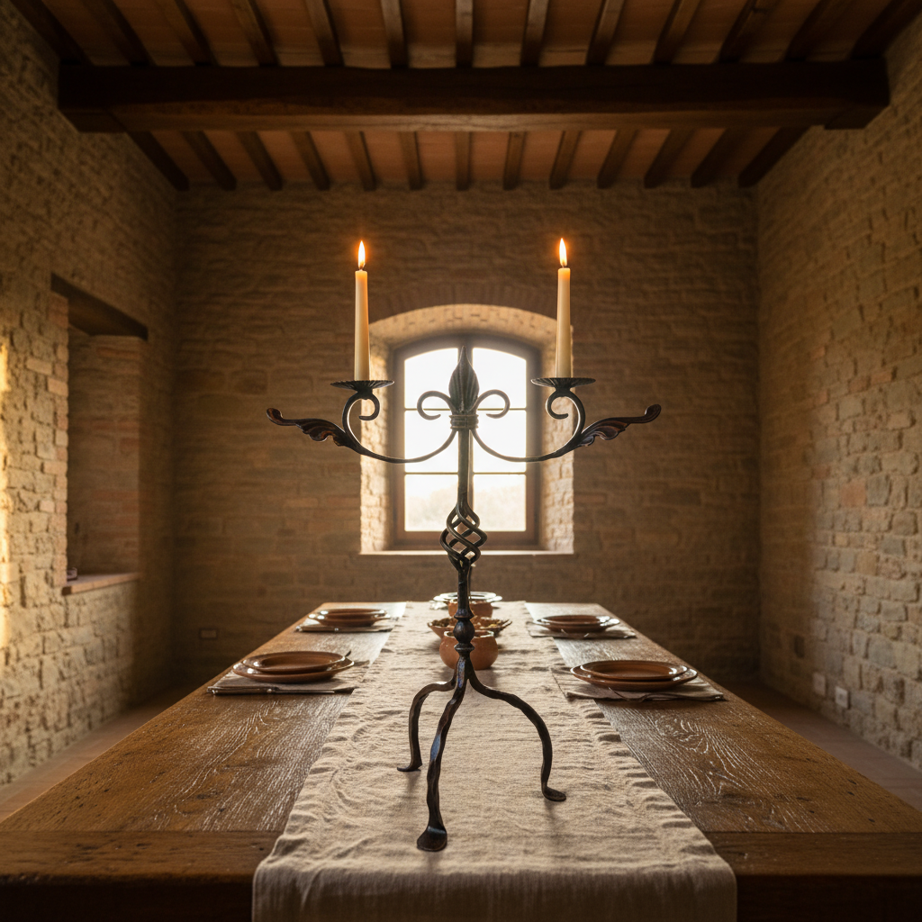 Some spaces require finesse, while others demand presence. This 59 cm (23-inch) tall hand-forged candelabra is designed for the latter. It brings the authentic, artisanal spirit of the blacksmith directly into your grandest spaces.