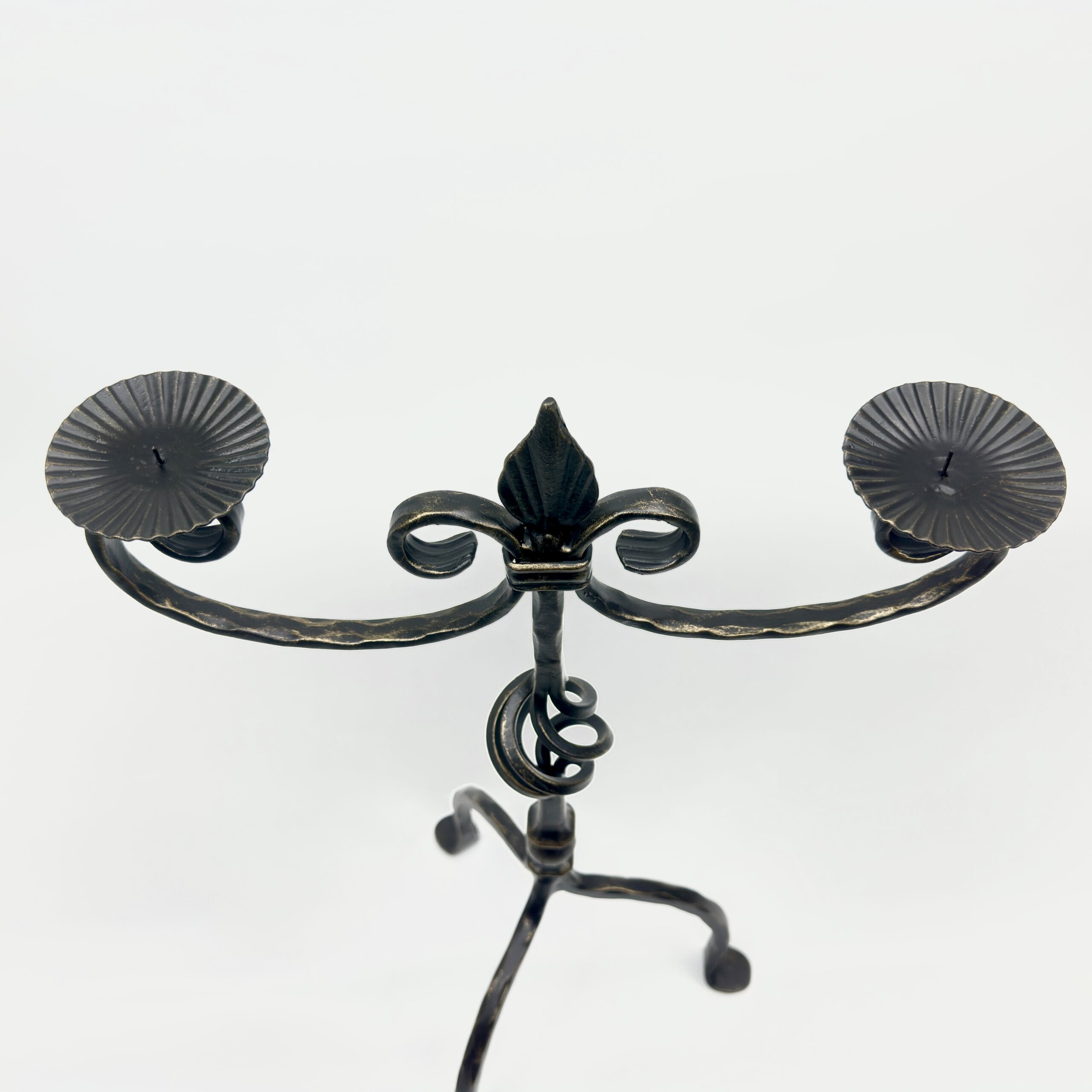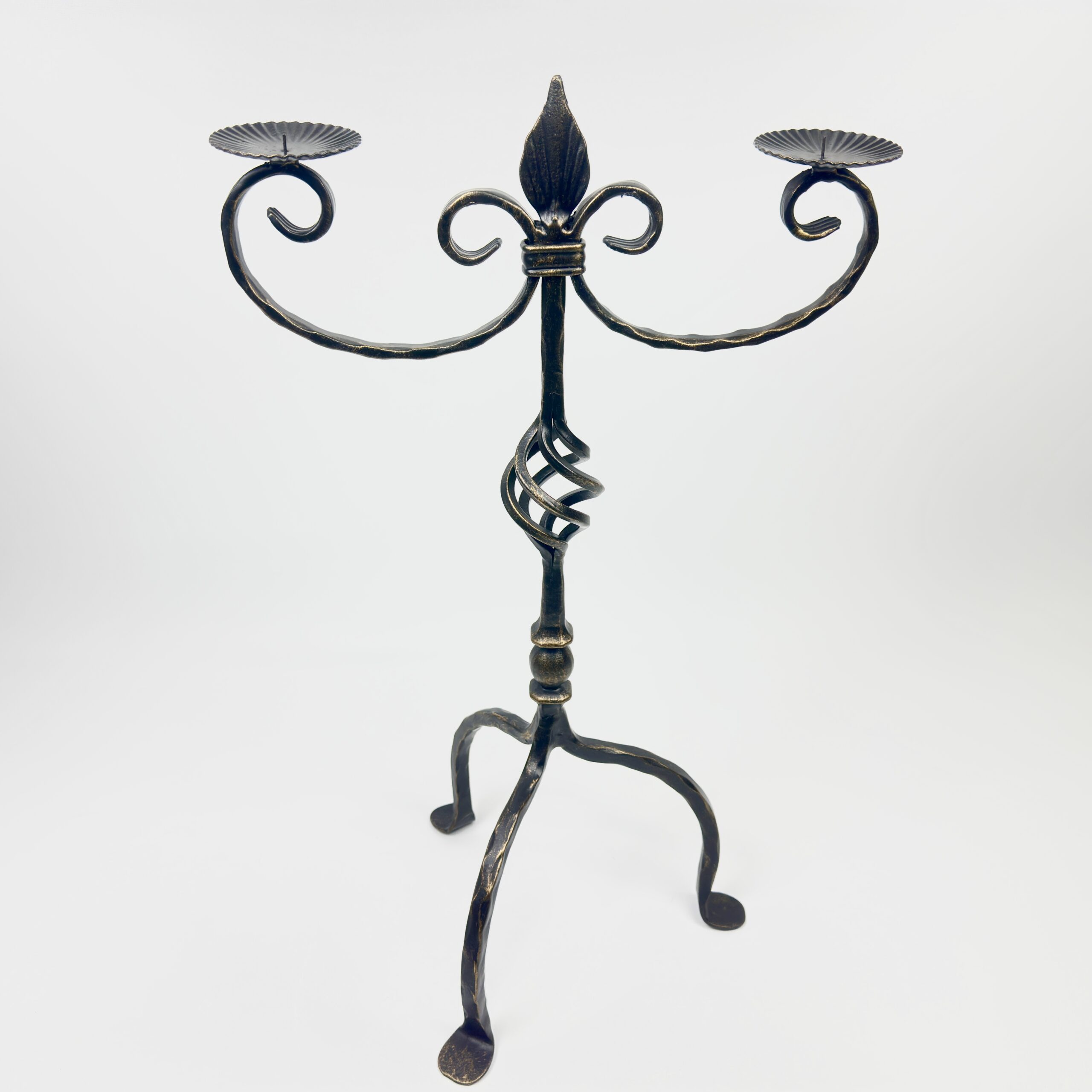 Hand Forged Iron Candelabra 24.5″ (62cm) Antique Gold Patina Finish 2-Arm Royal Scrolled Mantel Decor