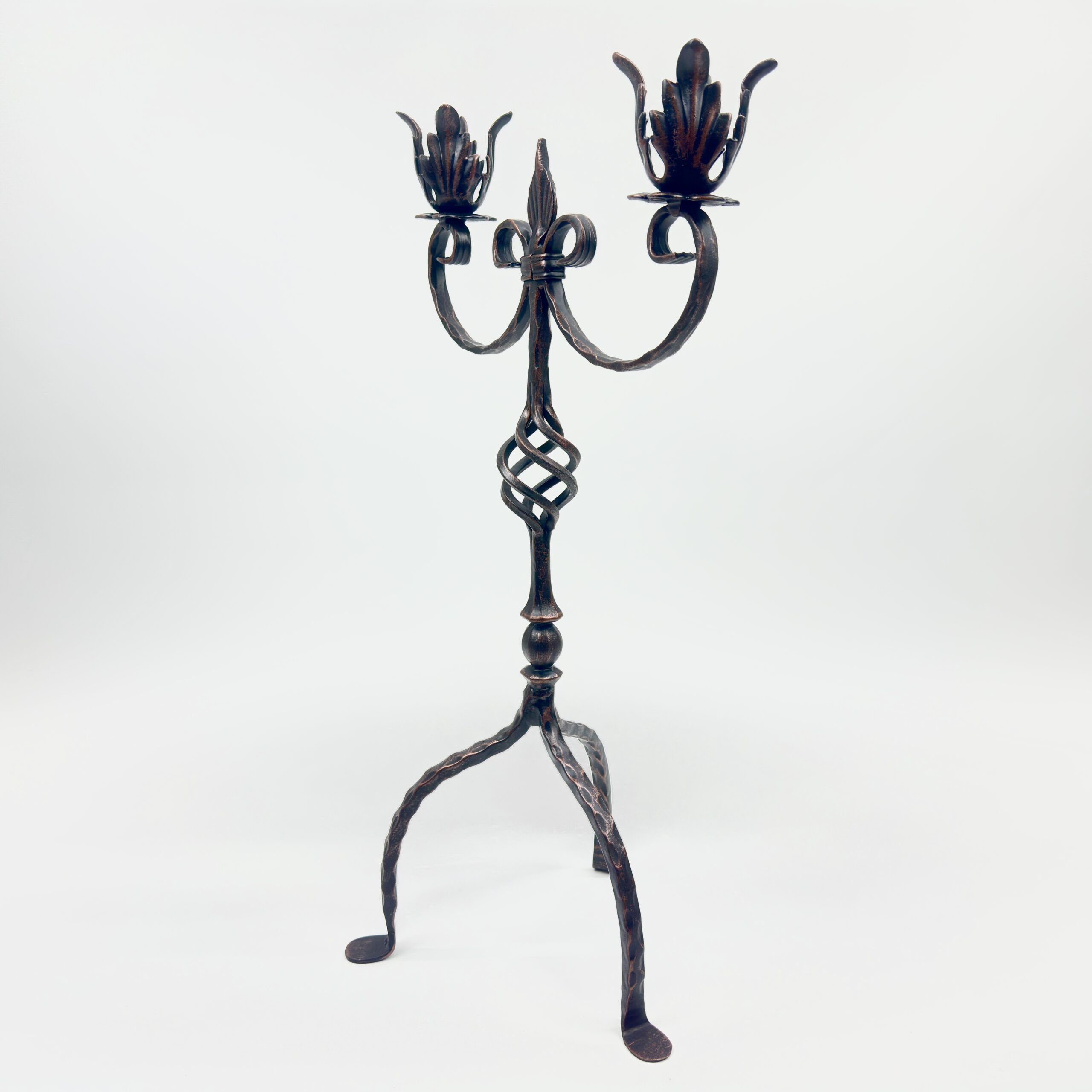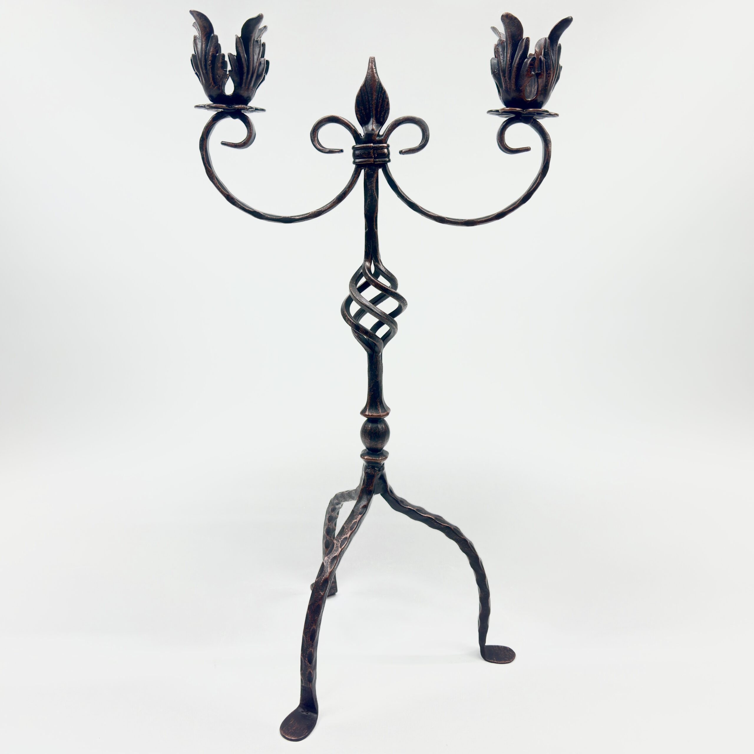 Hand Forged Iron Candelabra 25″ (63cm) Antique Copper Finish 2-Arm Royal Fleur-de-Lis Mantel Centerpiece