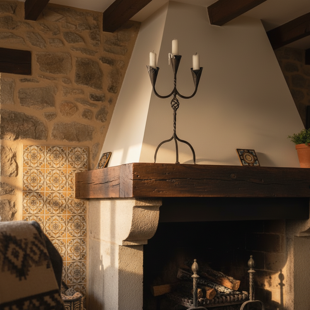 The “Tulip” Signature: Most candelabras use simple plates. Here, the iron is hammered into the shape of opening flower buds. This protects the candle base and adds a romantic, organic silhouette to the rigid metal structure.