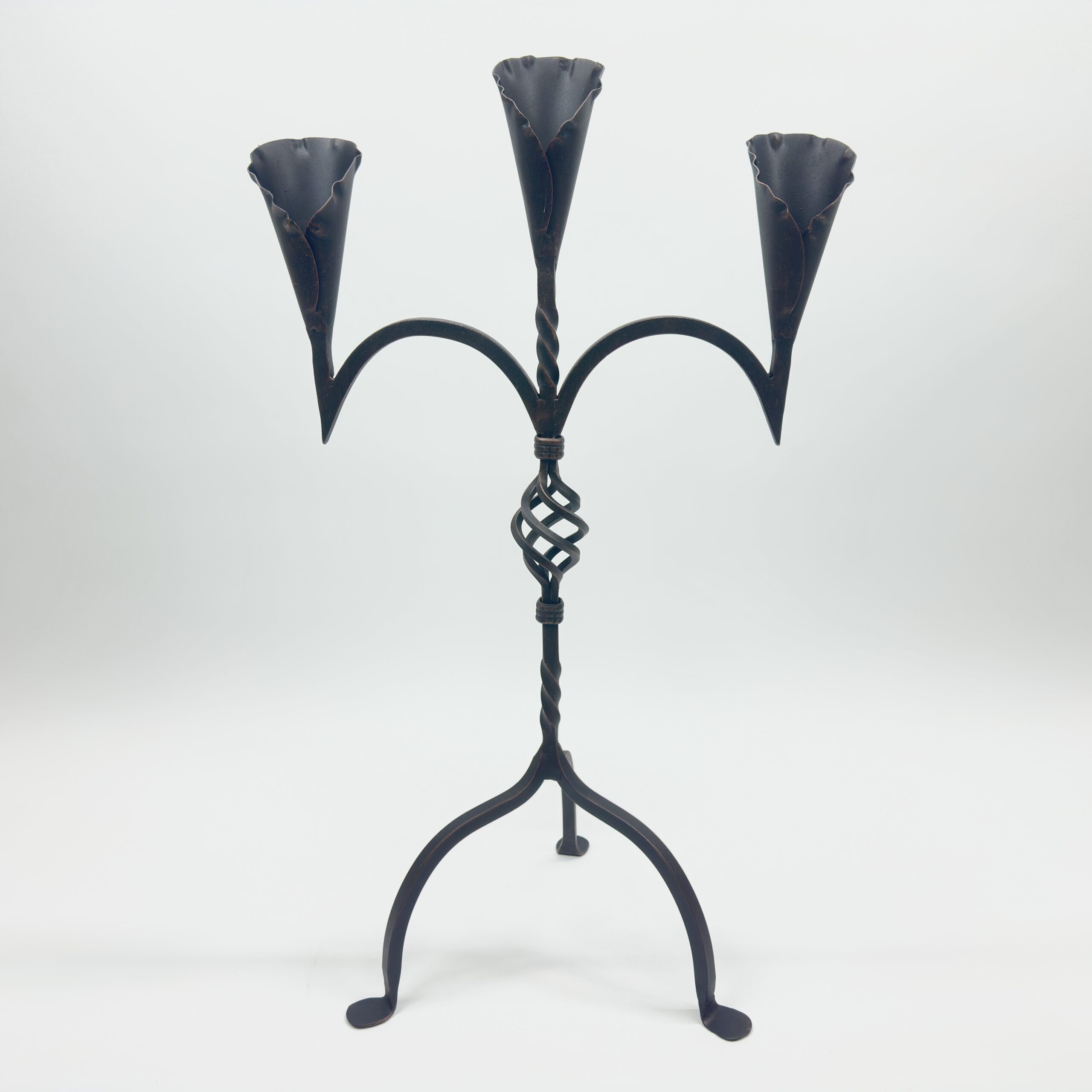 Hand Forged Wrought Iron Floor Candelabra 48″ (123cm) 3-Arm Candle Holder Antique Copper or Gold Patina Choice Rustic Wedding Decor