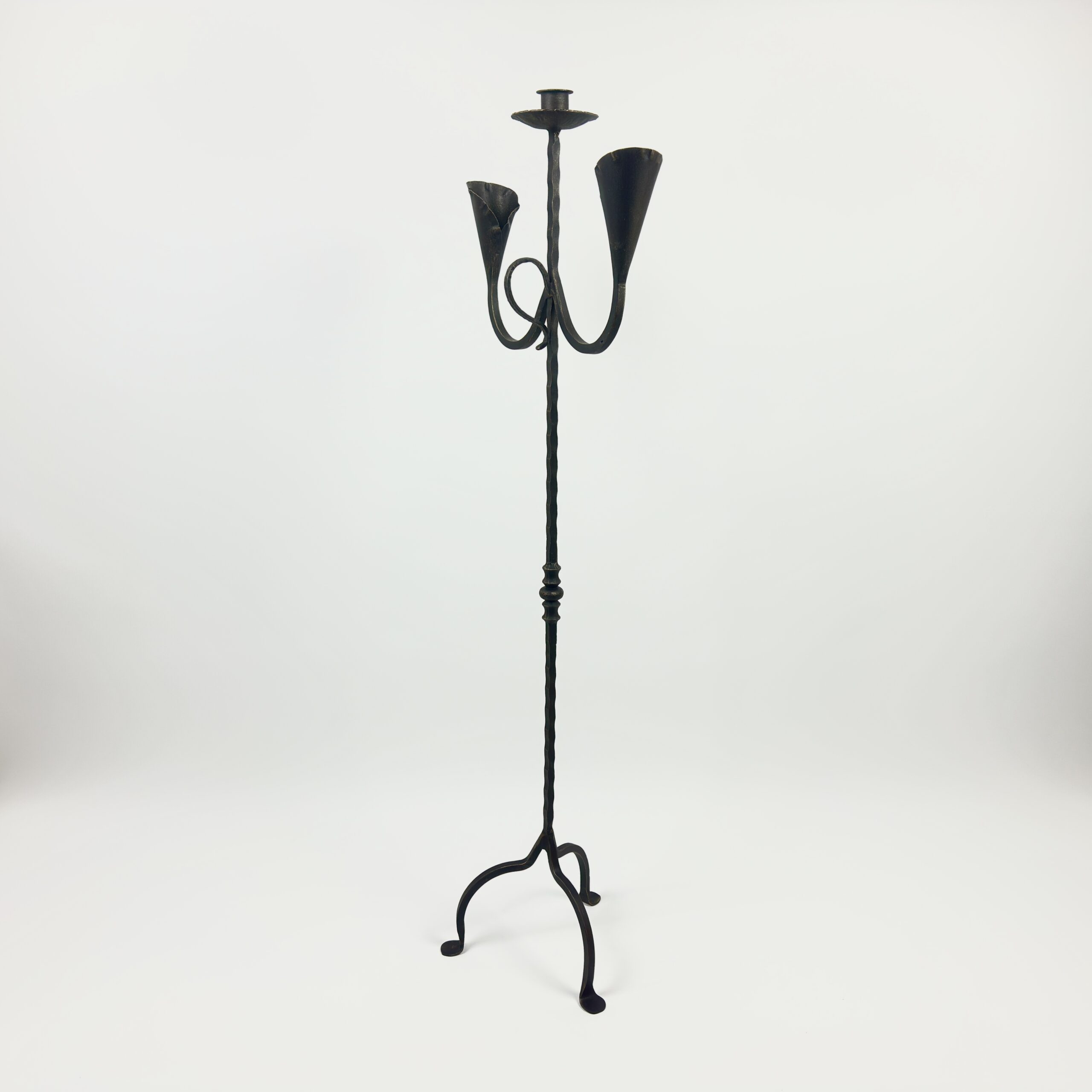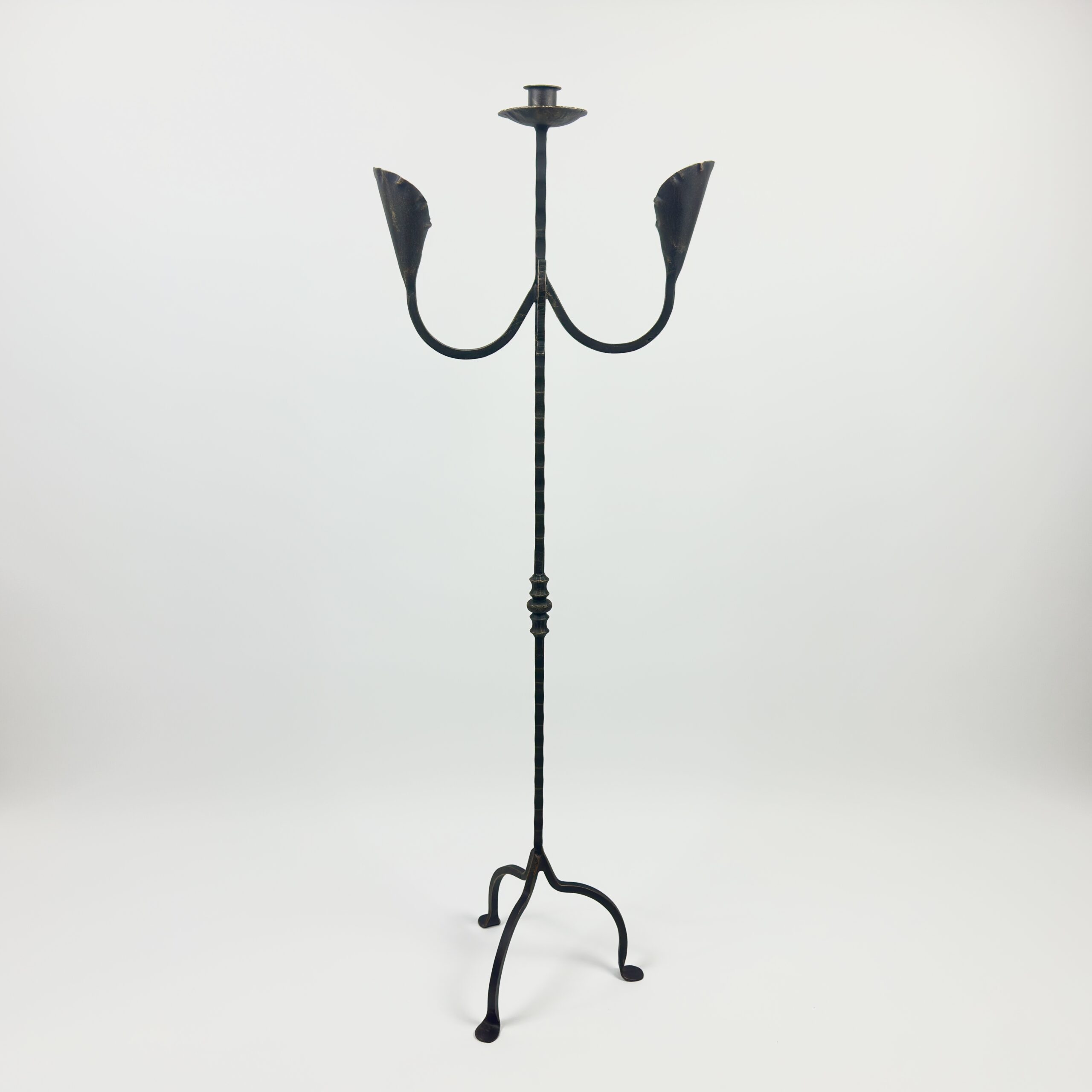 Add a touch of nature-inspired elegance to your home with this Hand-Forged Wrought Iron Floor Candelabra. Standing at 123 cm (48 inches), this model stands out with its exquisite craftsmanship, specifically designed for those who appreciate artistic details.