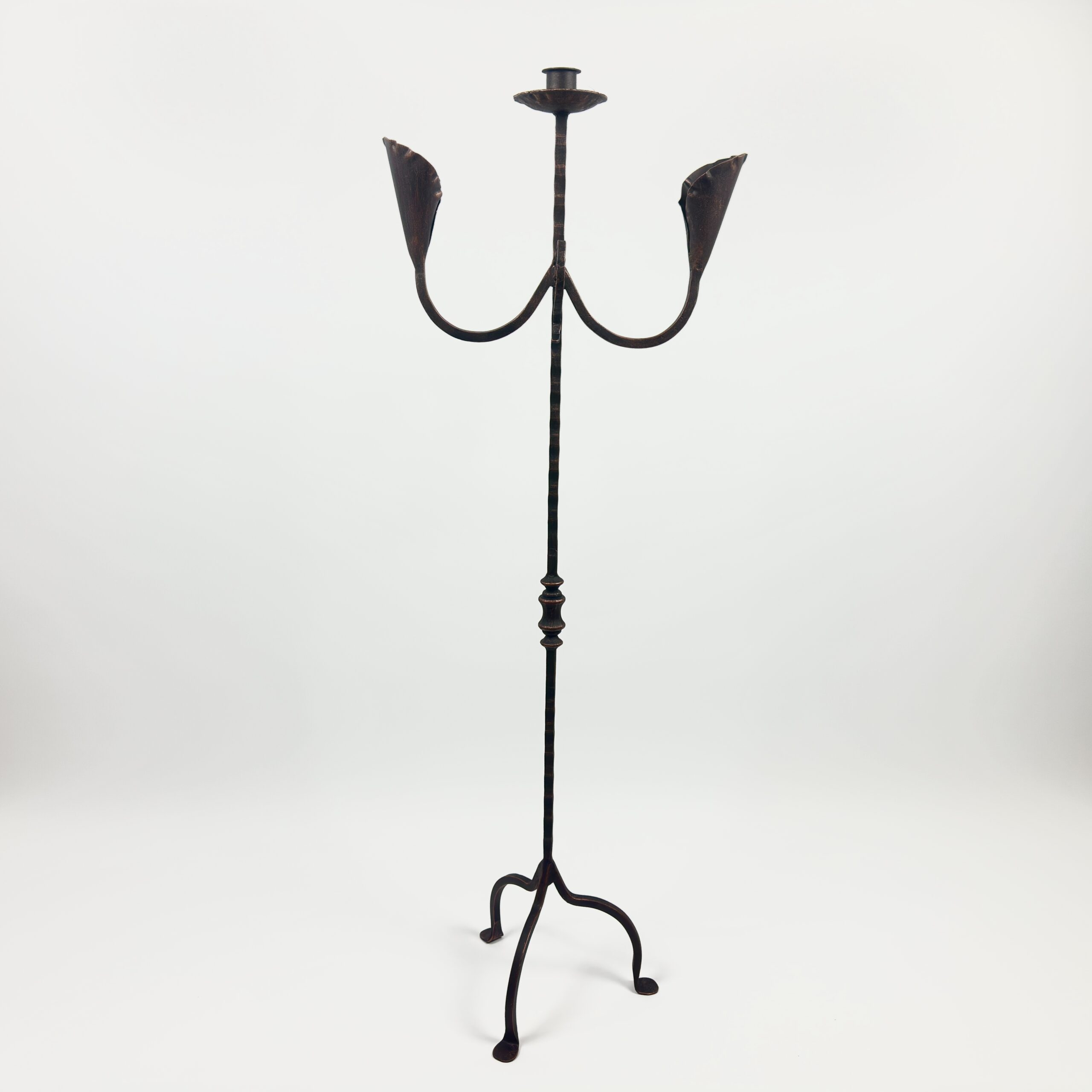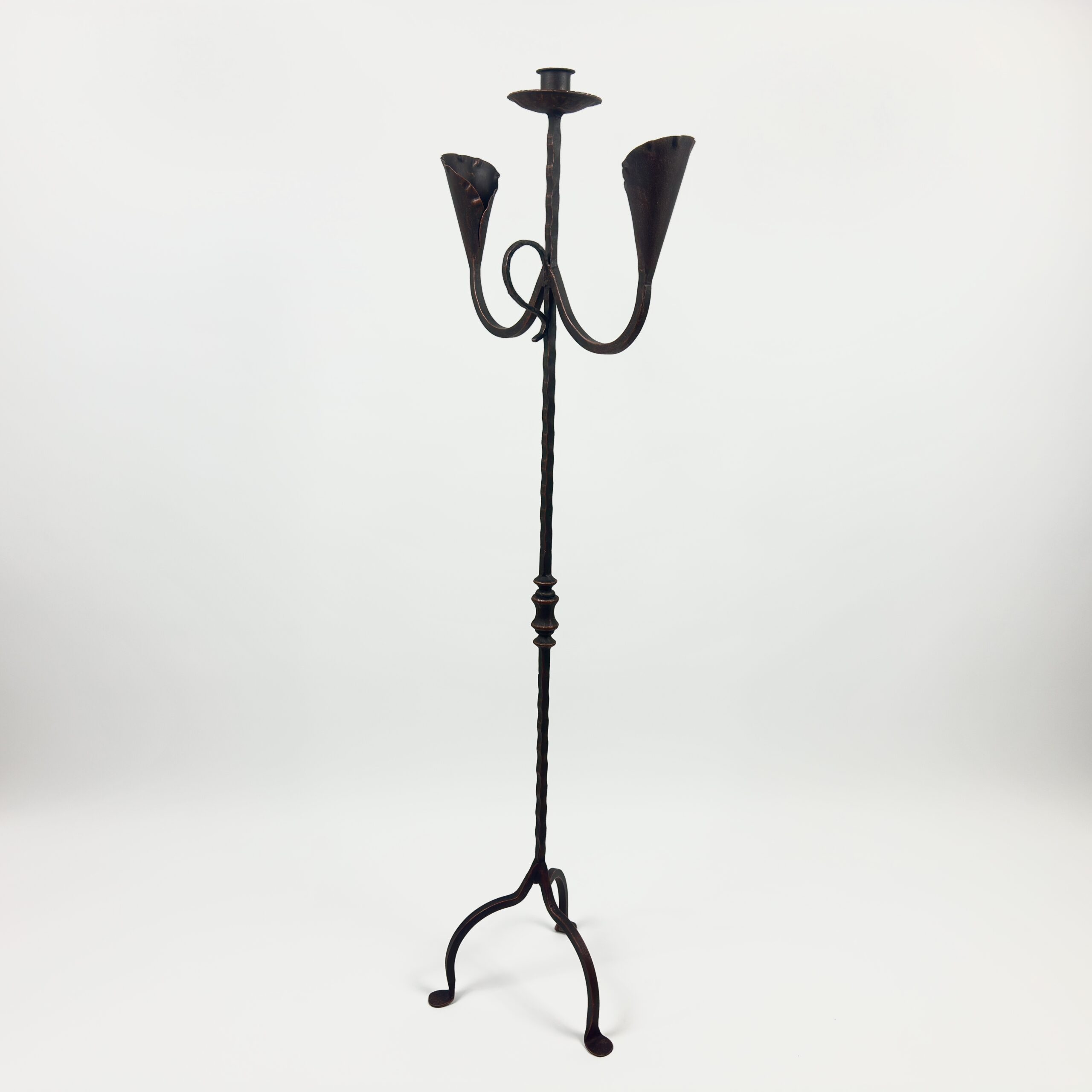 Hand Forged Wrought Iron Floor Candelabra 48″ (123cm) 3-Arm Candle Holder Antique Copper or Gold Patina Choice Rustic Wedding Decor