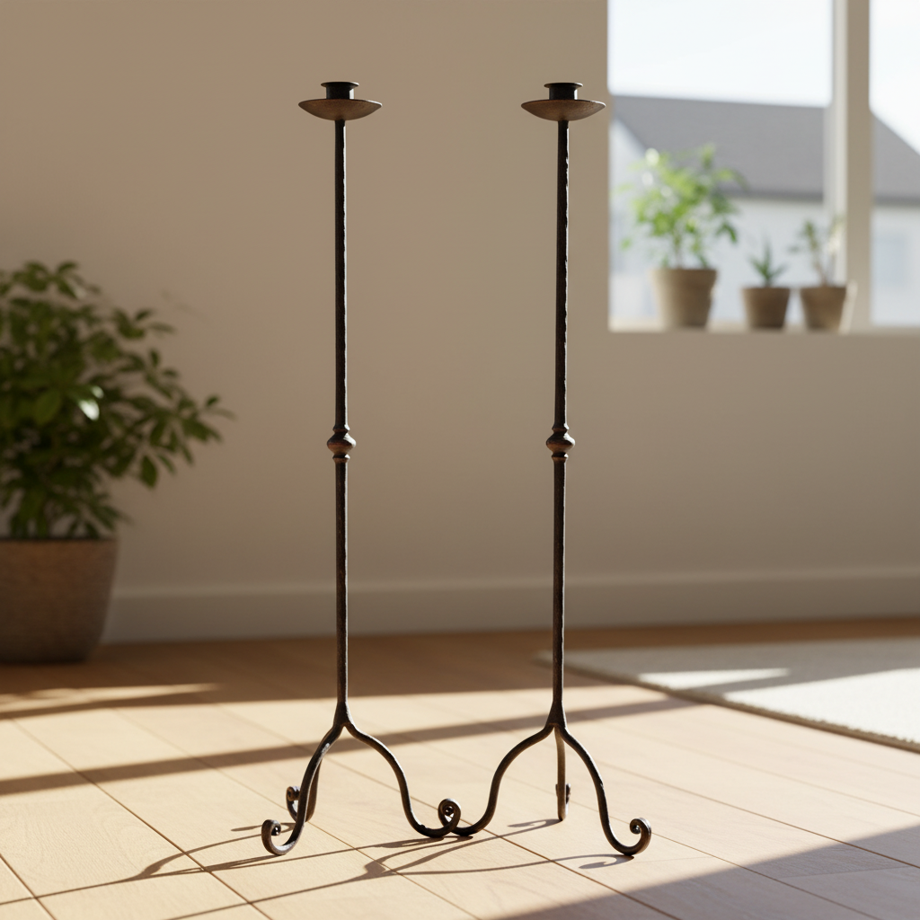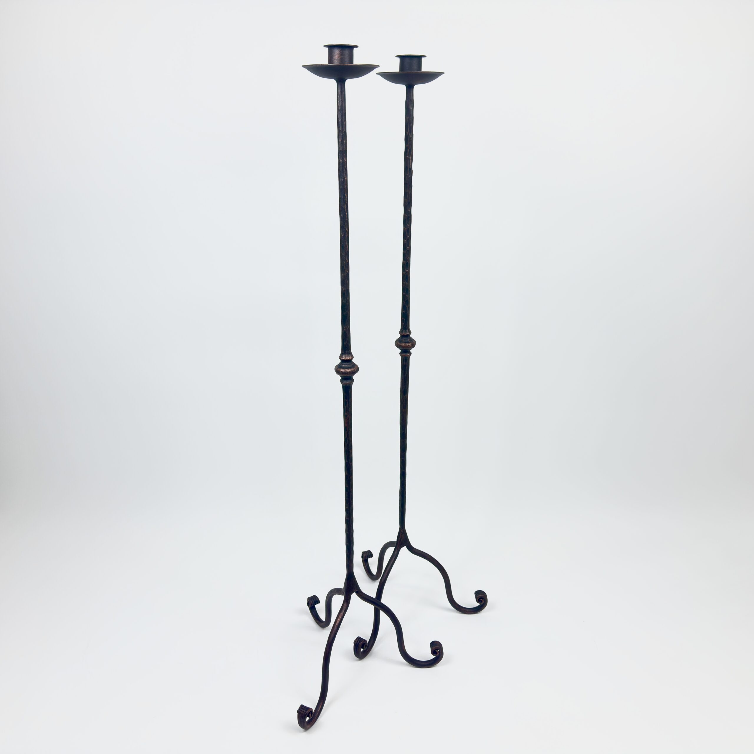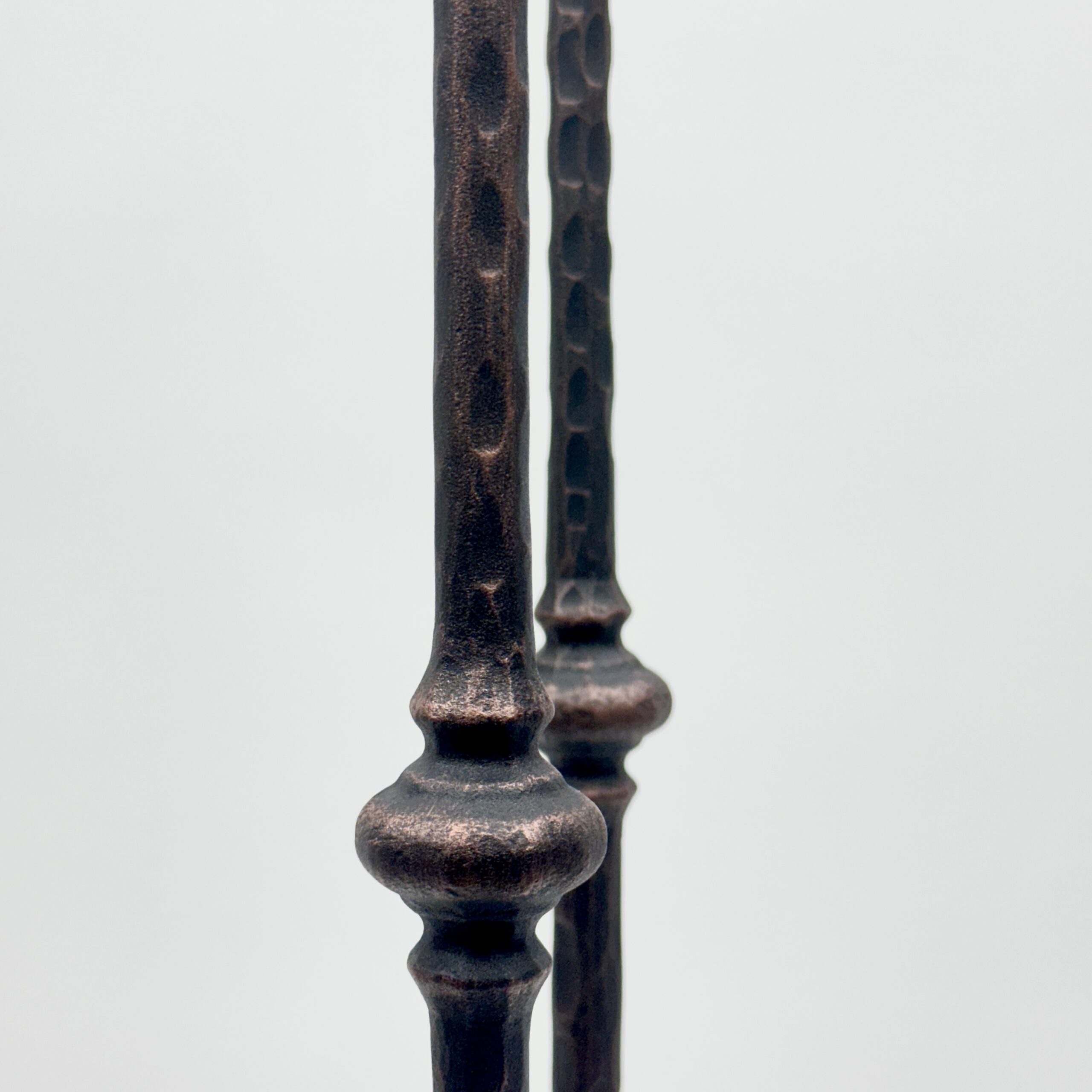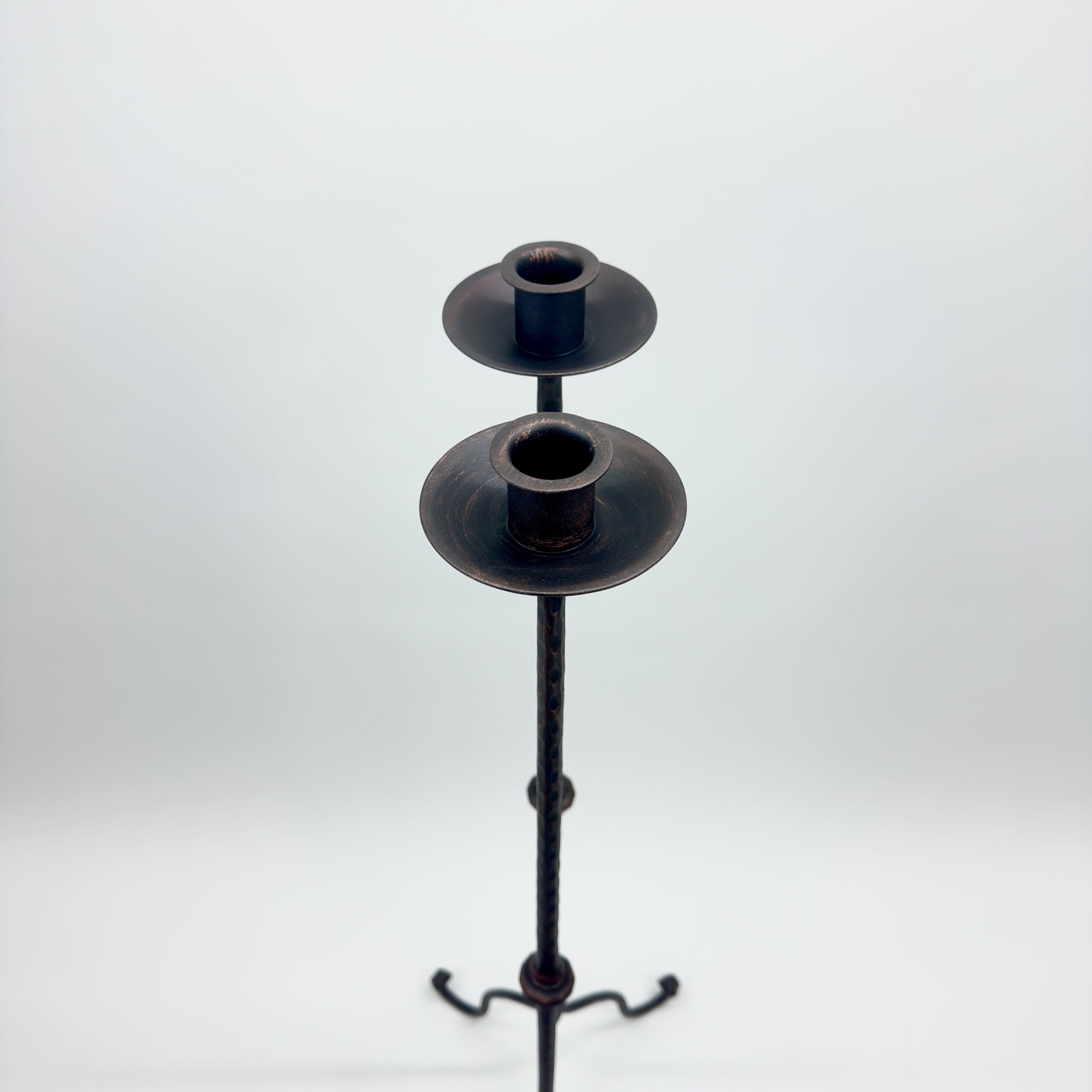 The Artisan Texture: Every inch of the stem bears the mark of the hammer. This “beaten” texture, combined with the central decorative node (knop), gives the piece an authentic, Old World feel that mass-produced items cannot match.