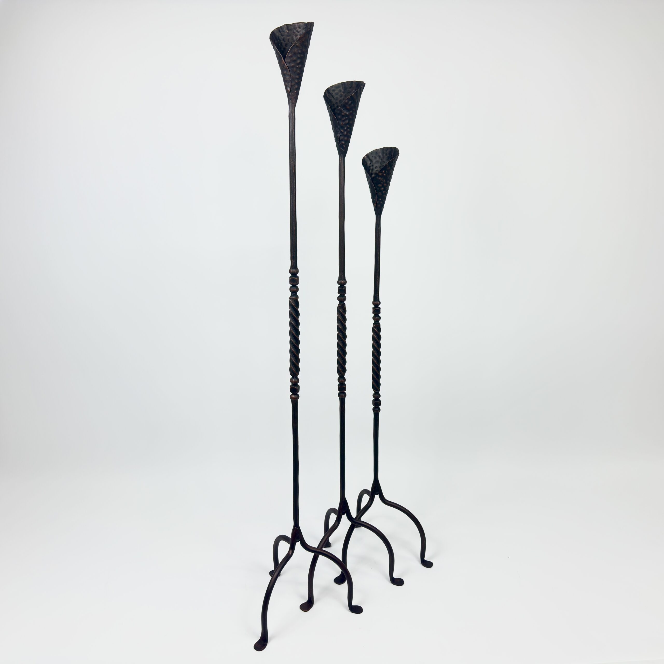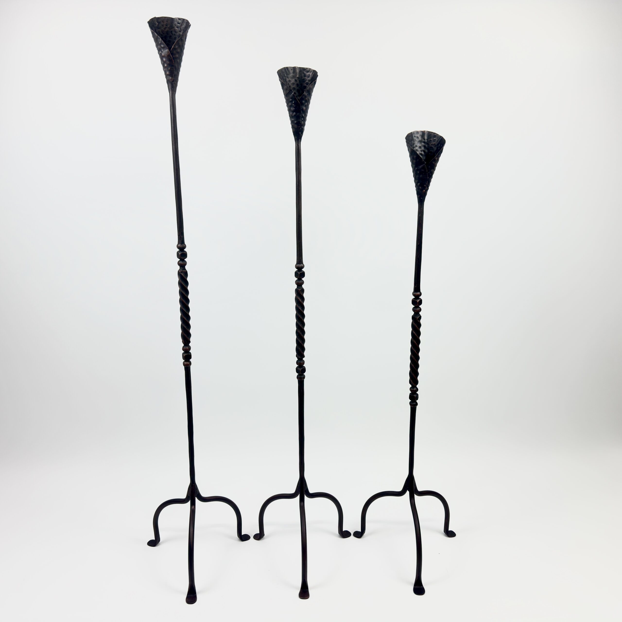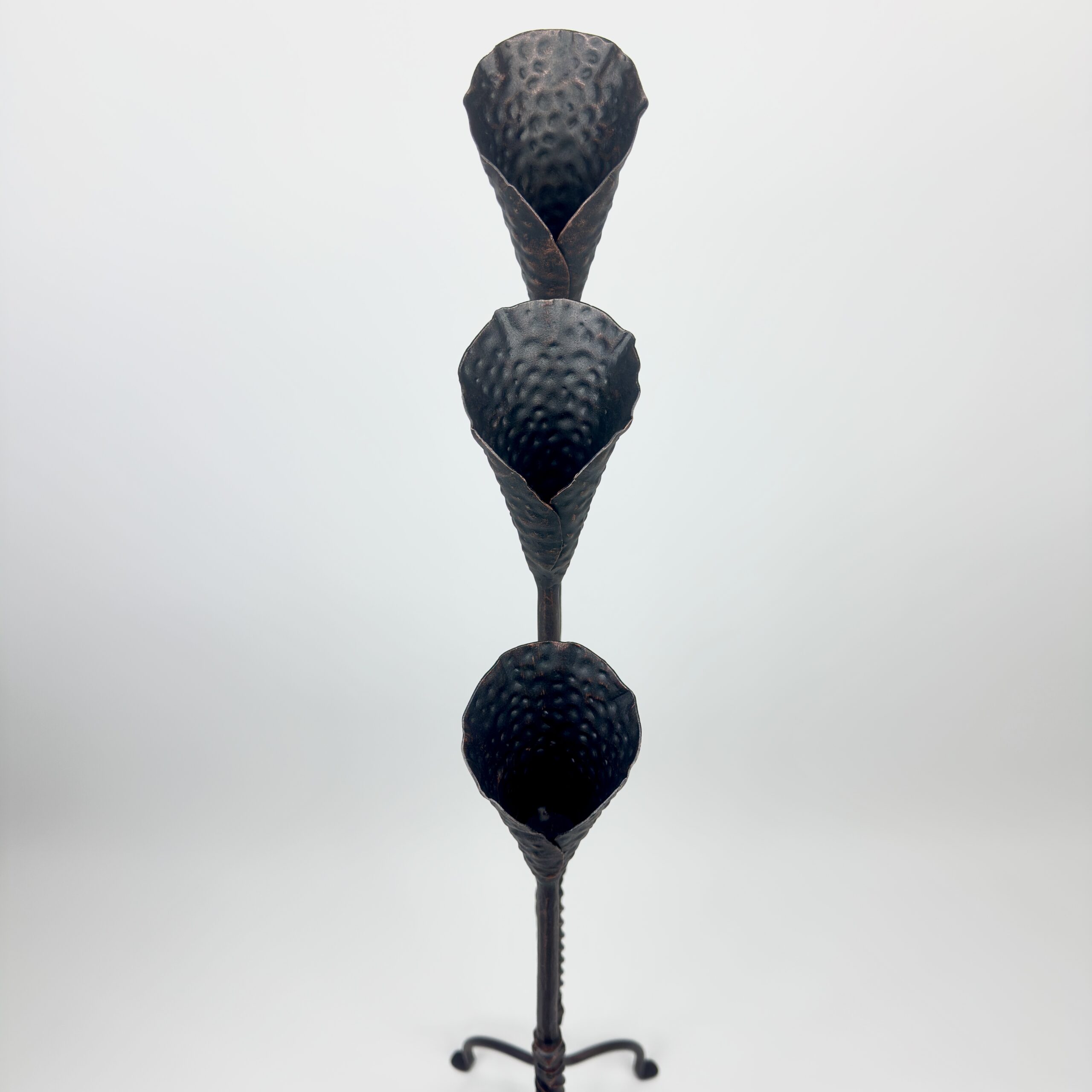 Hand Forged Iron Candelabra Set of 3 (100-120cm) Antique Copper Finish Barley Twist Stem with Calla Lily Cups