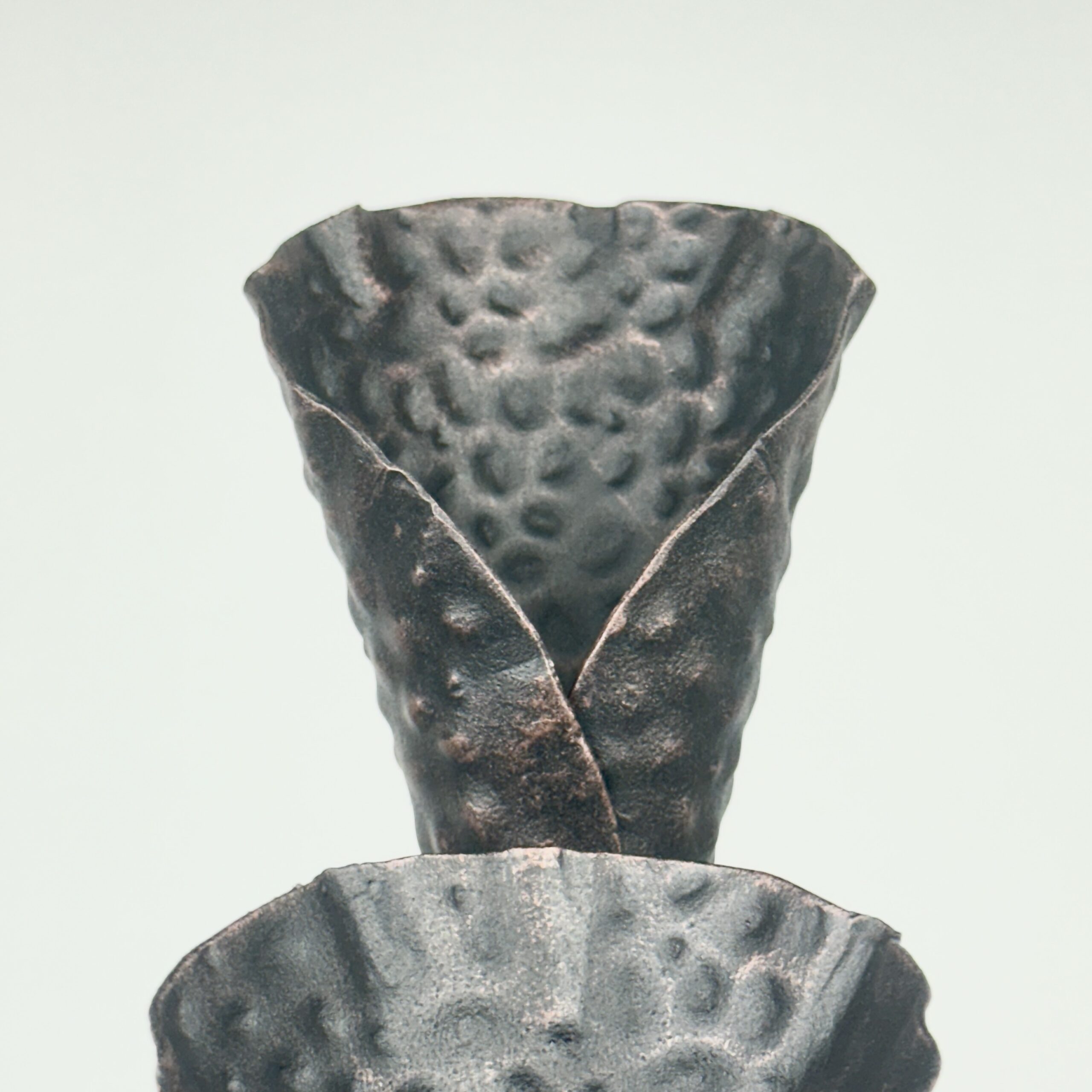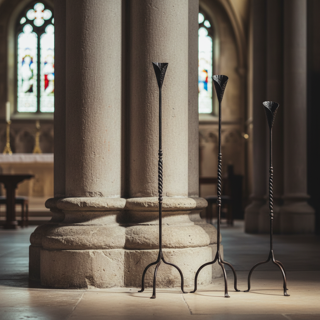 Experience a beautiful fusion of organic shape and traditional craftsmanship. This Hand-Forged Iron Set (120 cm, 110 cm, 100 cm) pairs the romance of a flower with the solidity of a twisted iron stem.