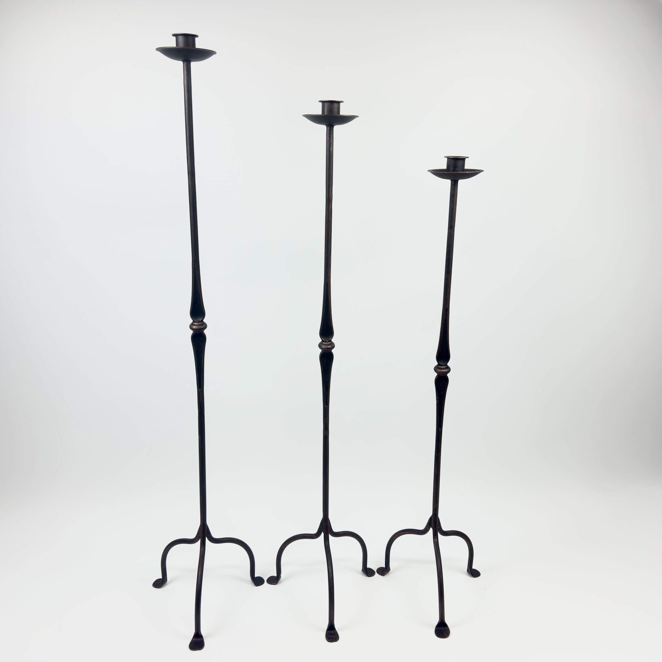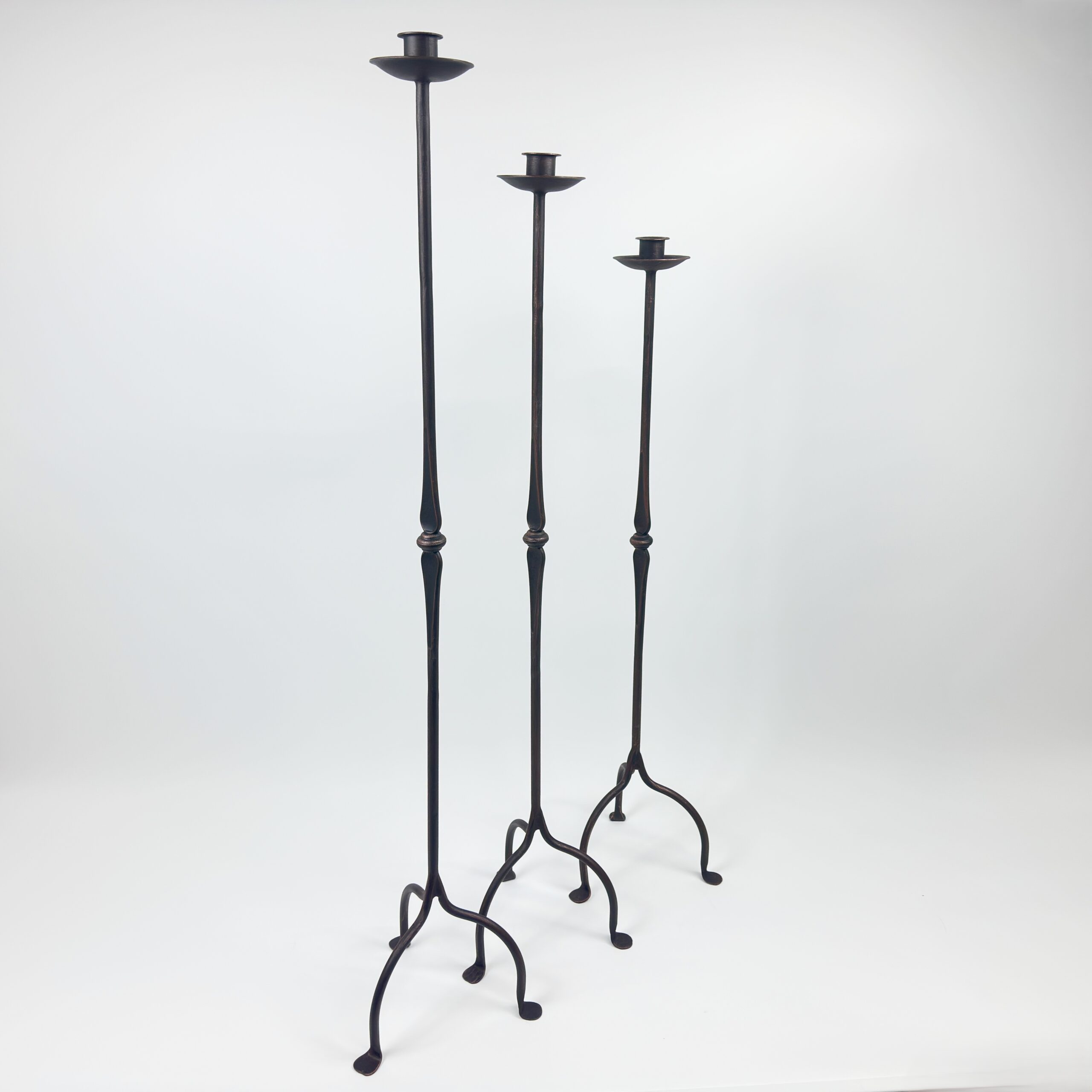 Hand Forged Iron Candelabra Set of 3 (100-120cm) Antique Copper Finish Classic Spindle Node Floor Set