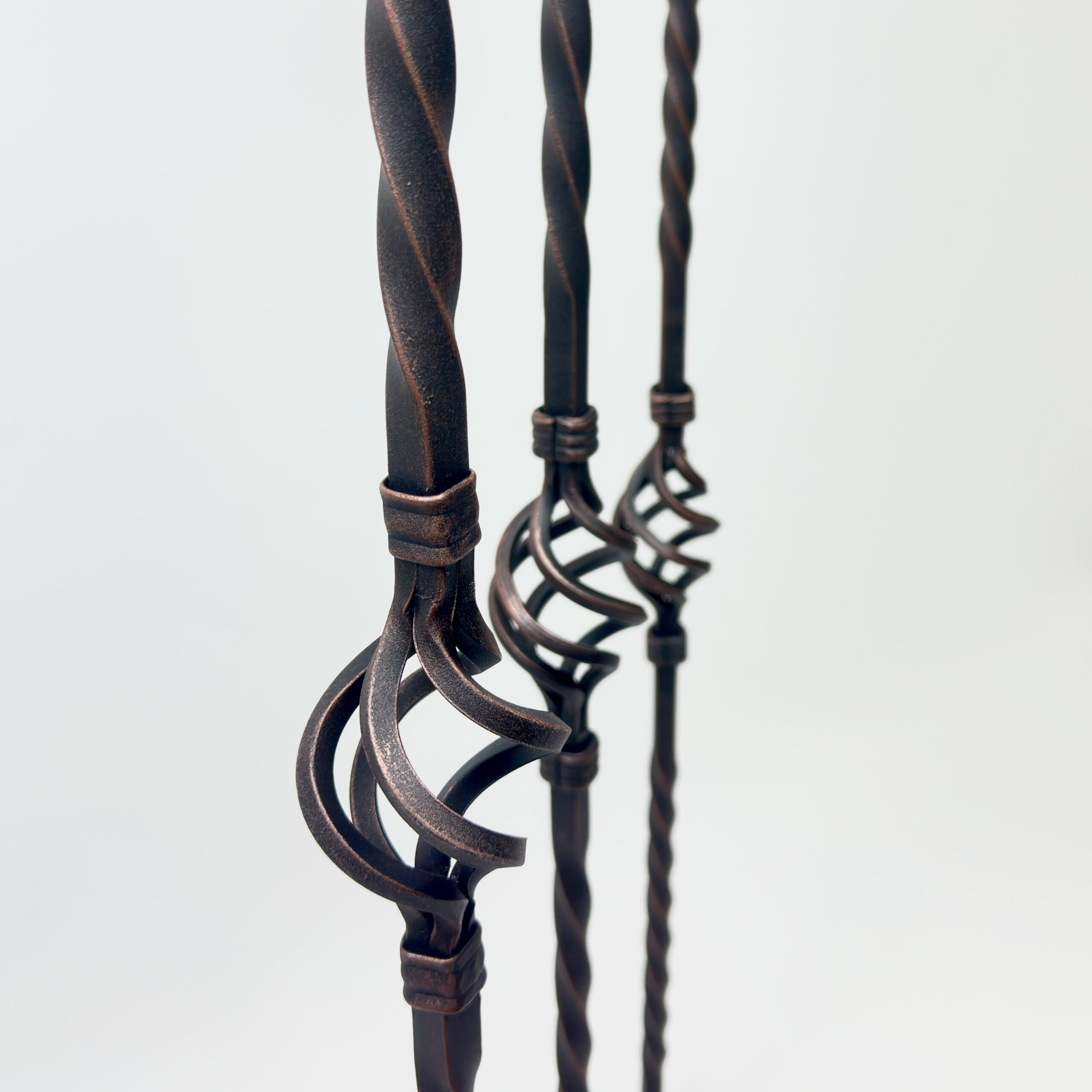Hand Forged Iron Candelabra Set of 3 (101-121cm) Antique Copper Finish Heavy Rope Twist Stem with Openwork Cage Detail