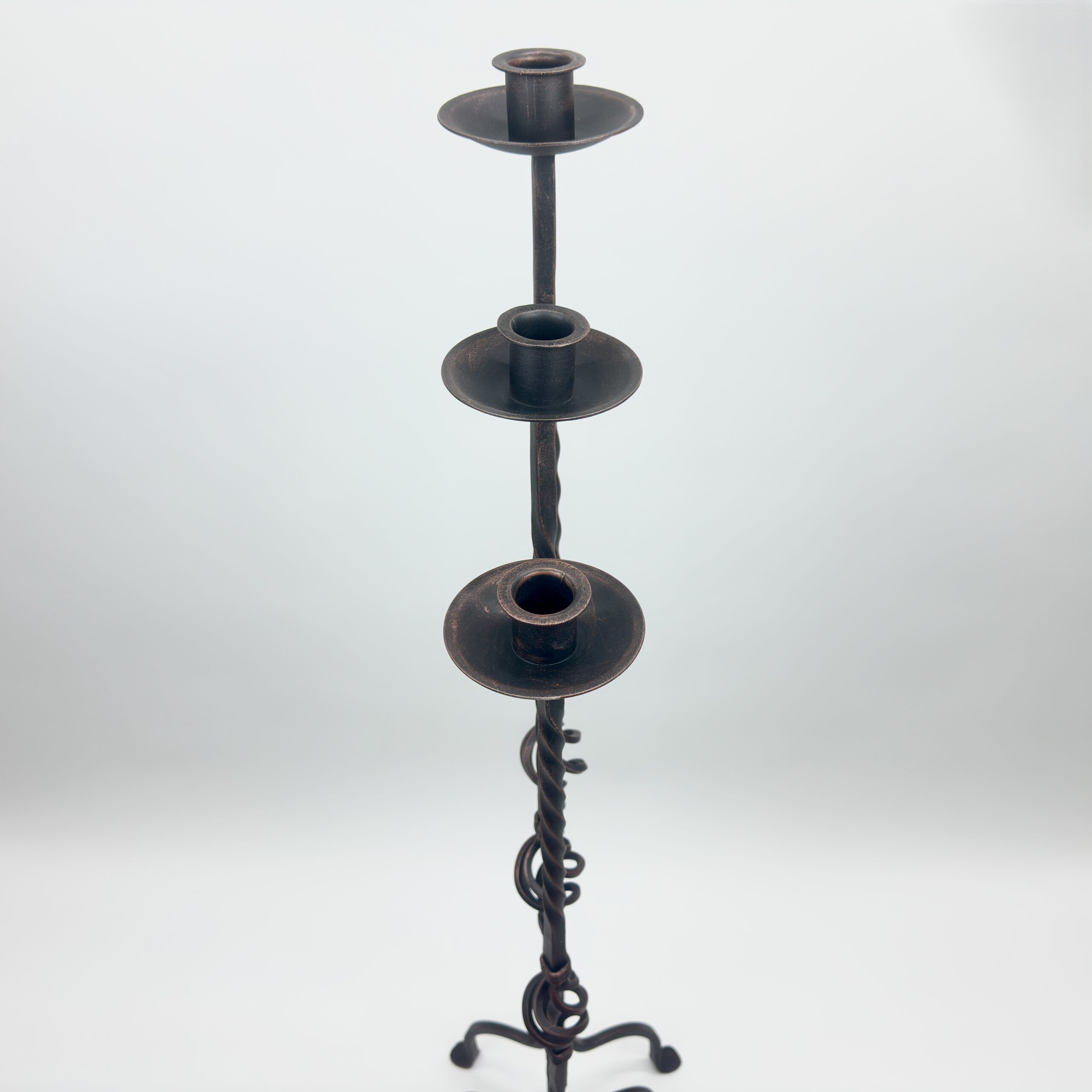 Hand Forged Wrought Iron Floor Candelabra 48″ (123cm) 3-Arm Candle Holder Antique Copper or Gold Patina Choice Rustic Wedding Decor