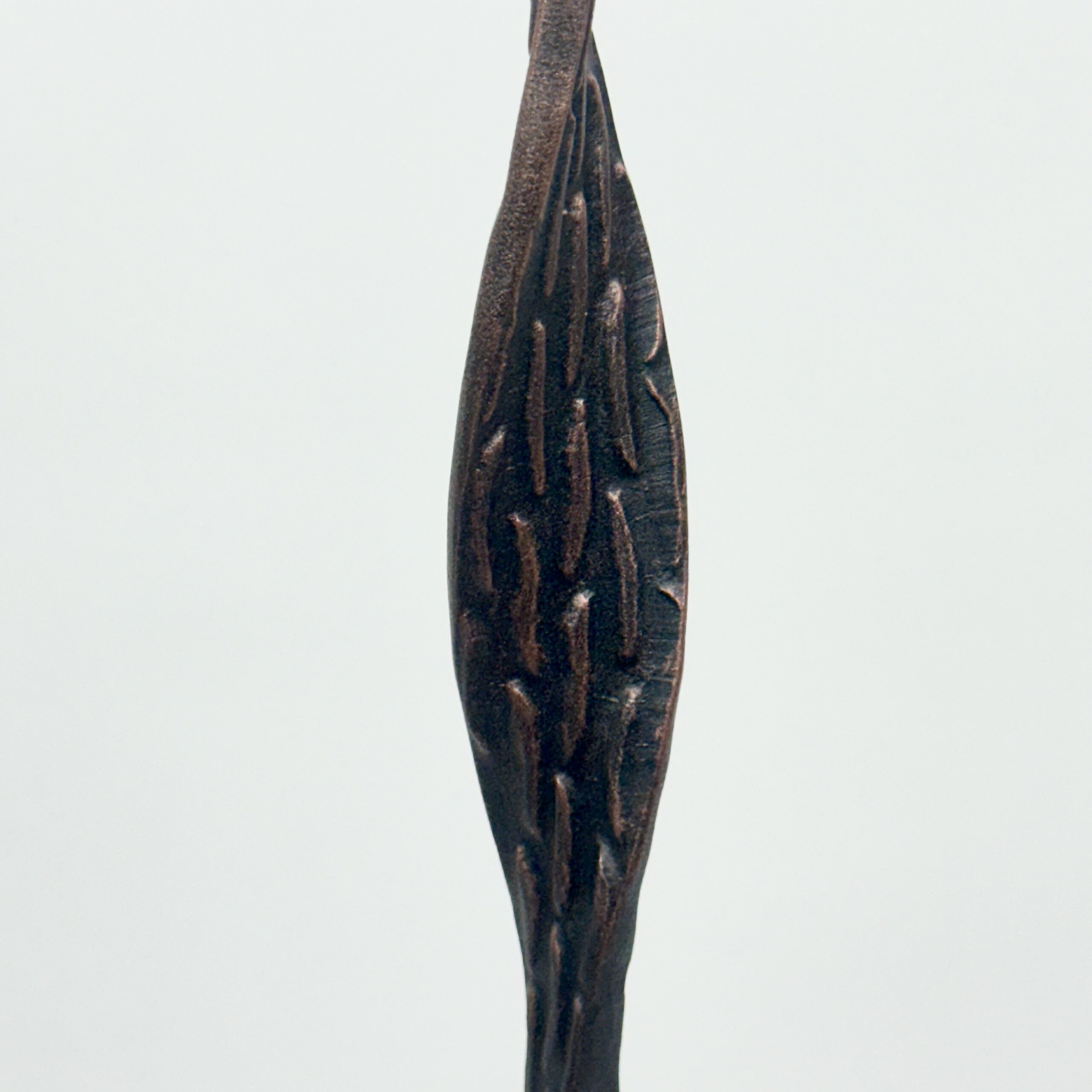 The Stem: Unlike standard rods, the iron here is split and twisted apart by the blacksmith. This creates “Open Twists” along the stem—see-through cages that catch the light and add visual depth without adding weight.