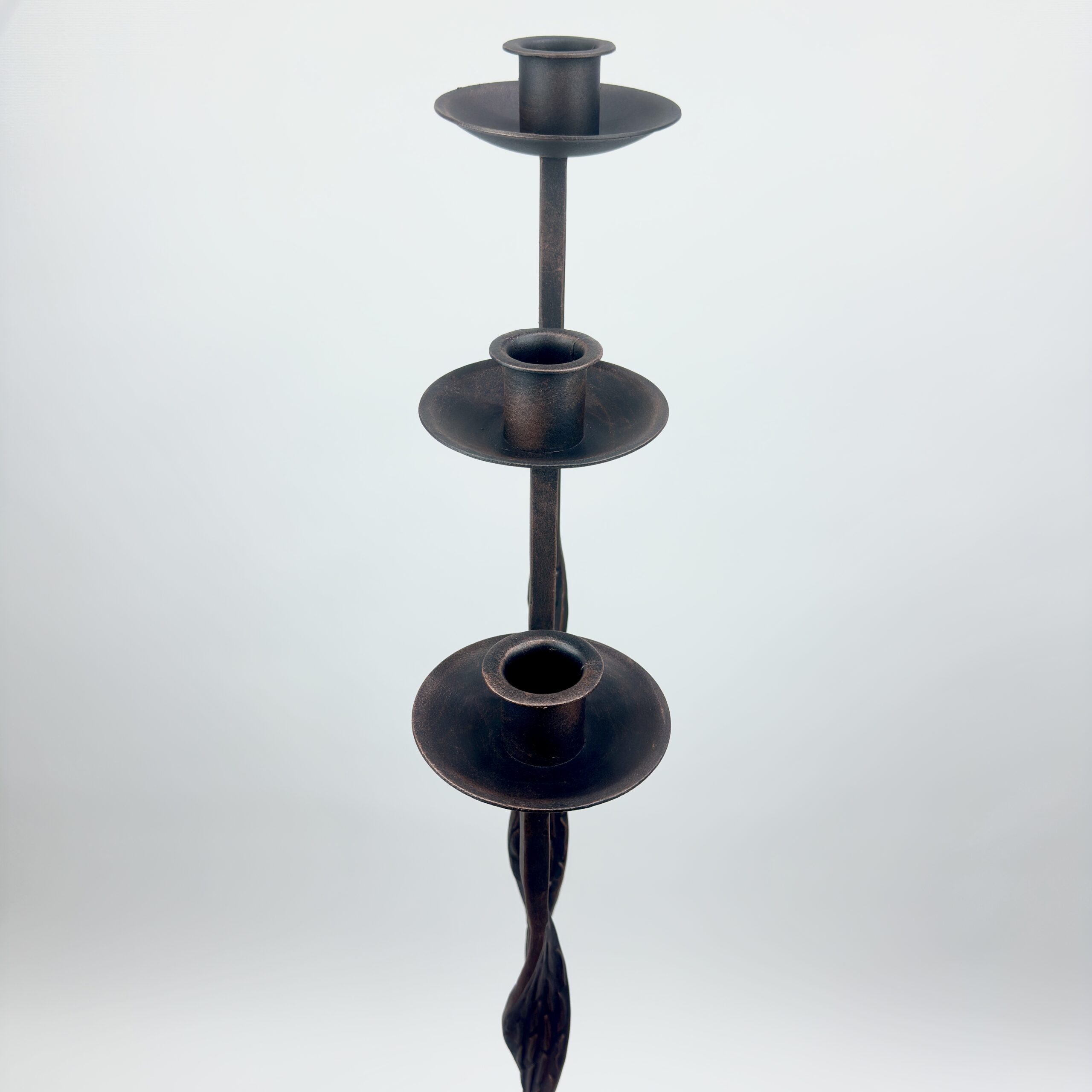 Hand Forged Iron Candelabra Set of 3 (107-127cm) Antique Copper Finish Open Twist Stem with Arched Base