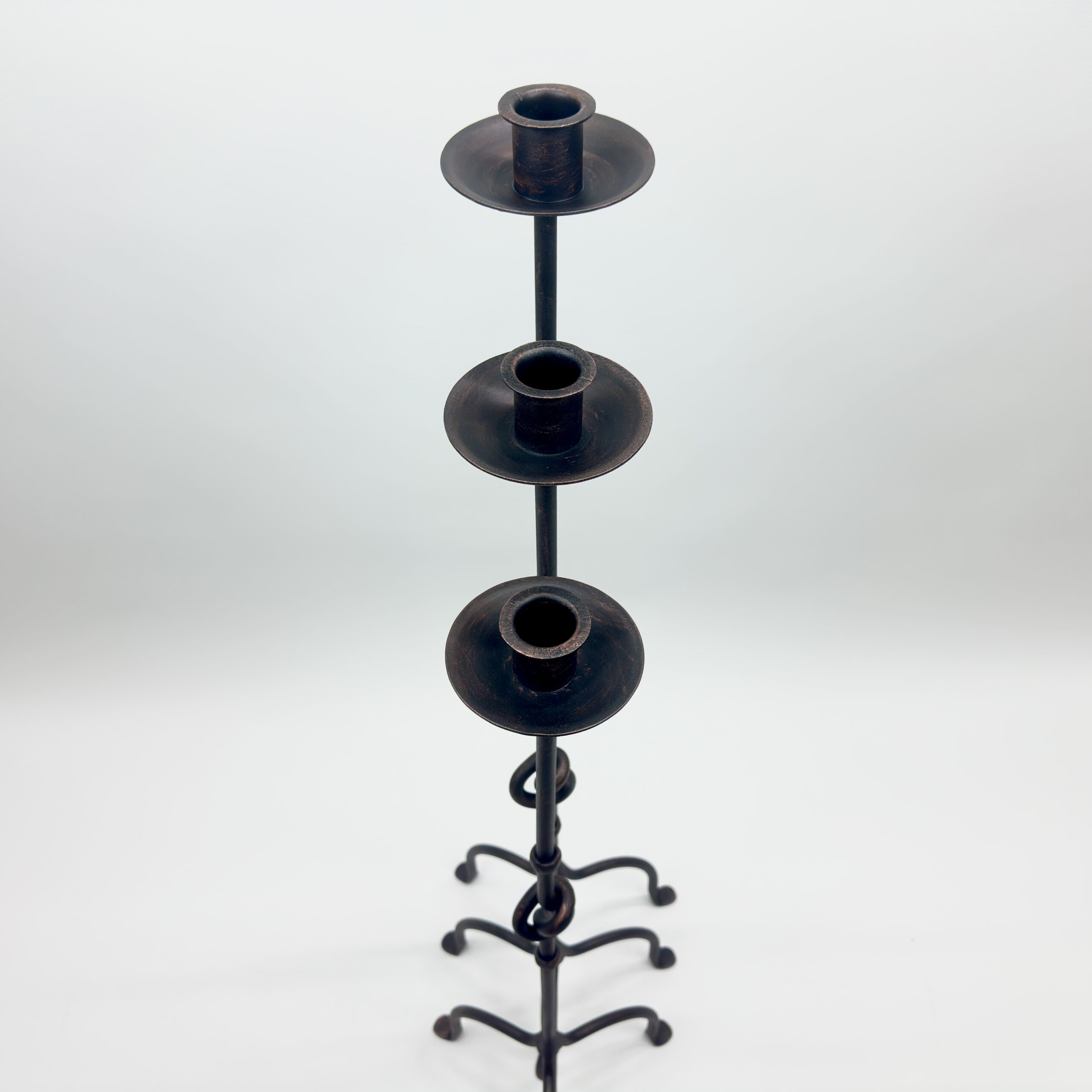 Hand Forged Iron Floor Candelabra 48″ (122cm) Antique Copper Patina 3-Arm Loop Design Classic Candle Holder Rustic Decor