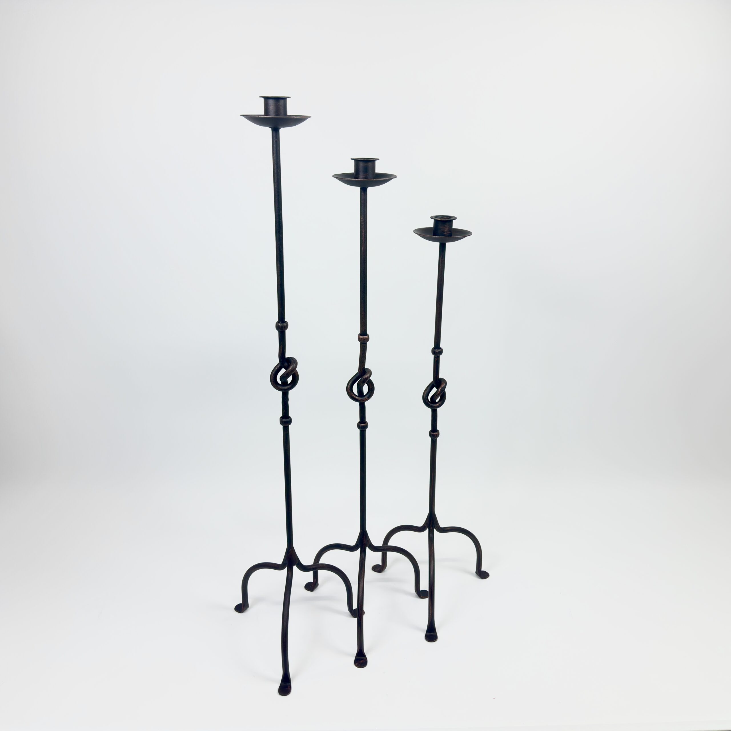 Hand Forged Iron Candelabra Set of 3 (80-100cm) Antique Copper Finish Love Knot Stem Floor Set
