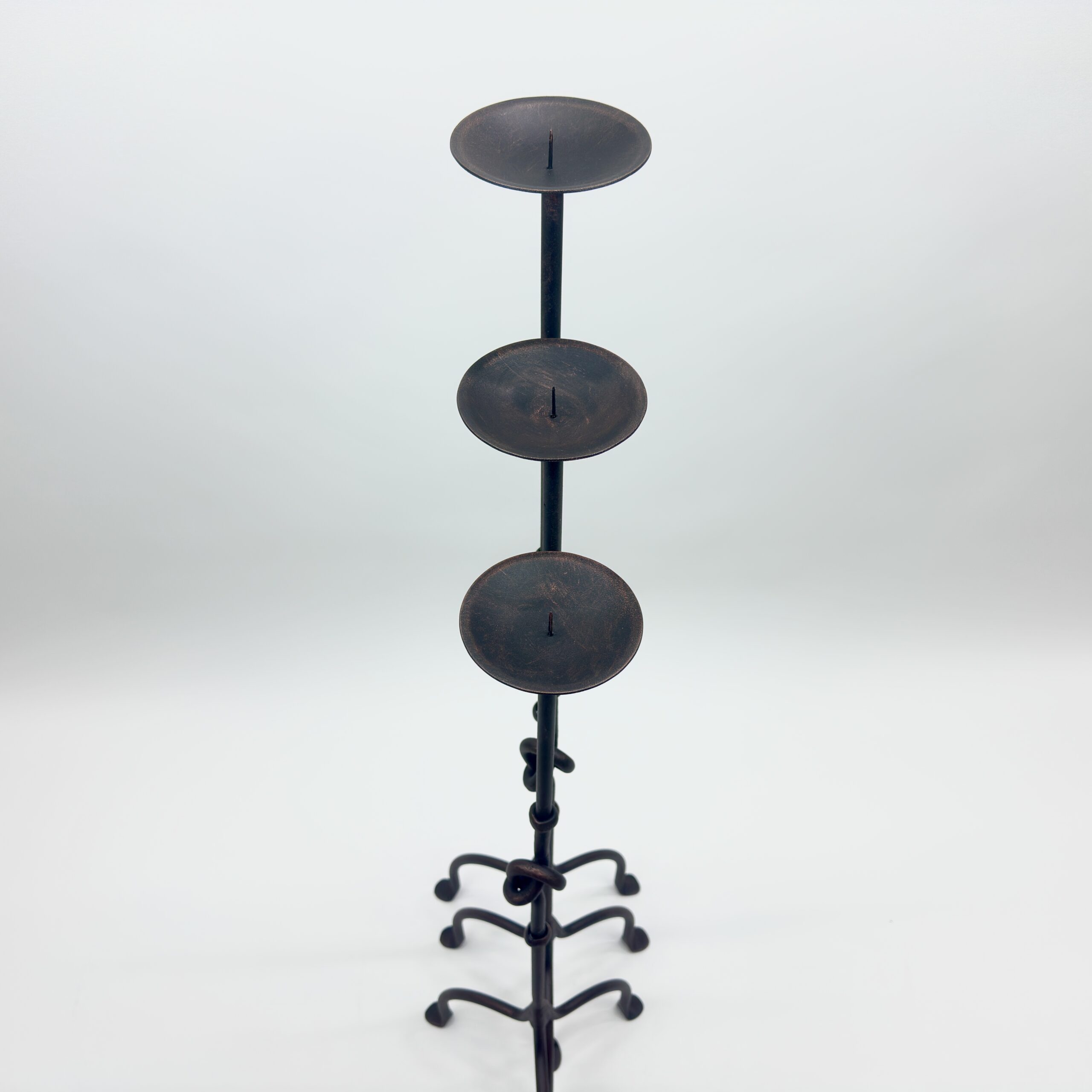 Hand Forged Iron Candelabra Set of 3 (82-101cm) Antique Copper Finish Knotted Stem with Arched Base
