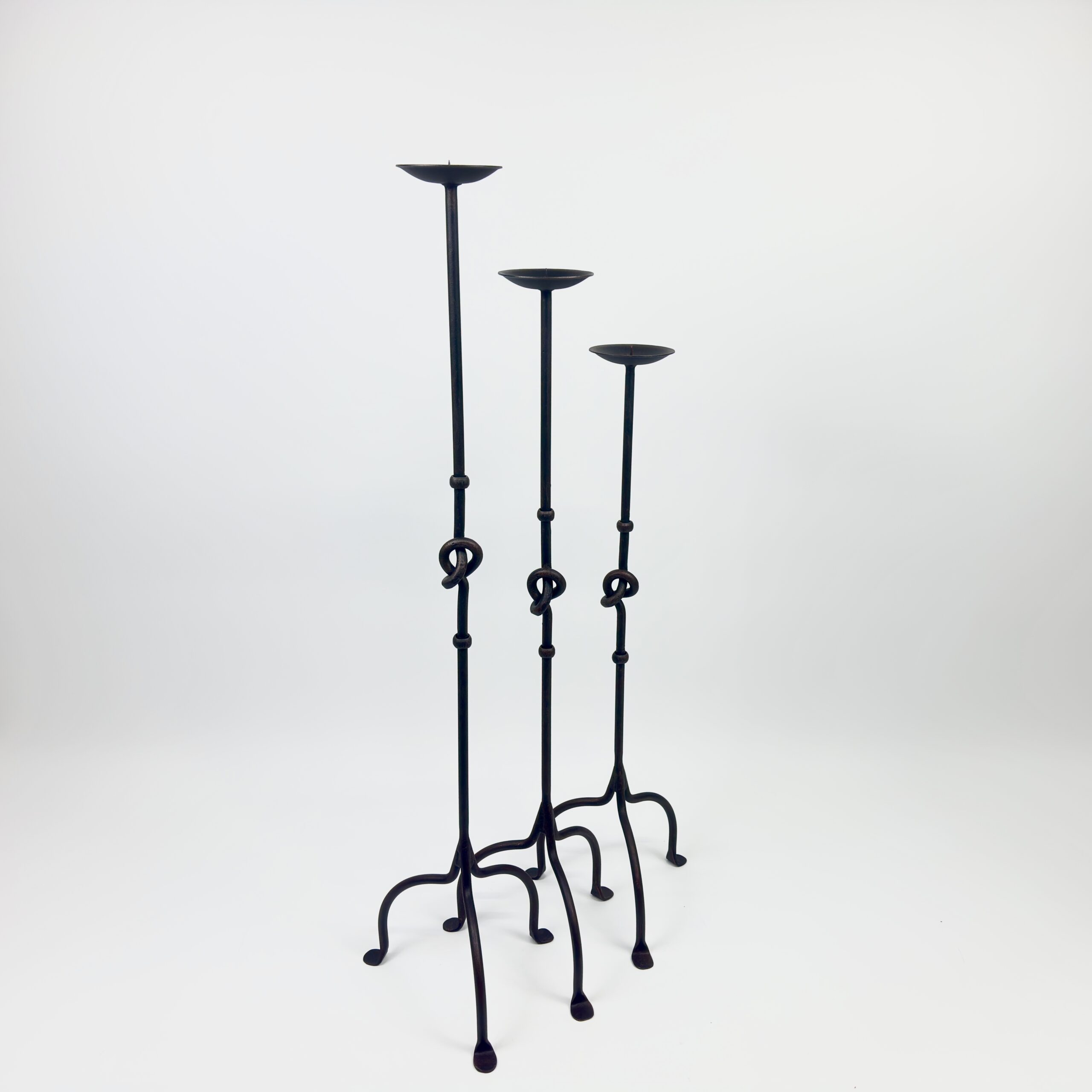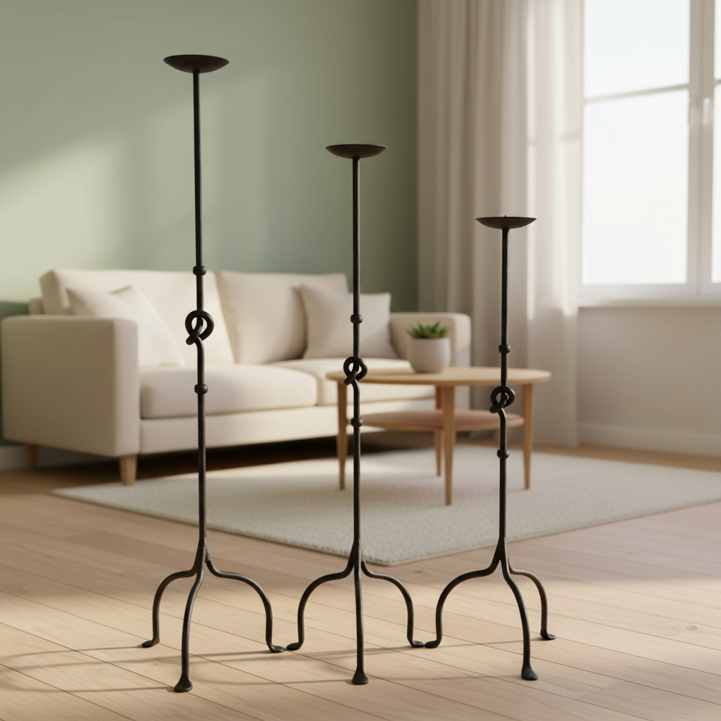 Combine the symbolism of the “Love Knot” with the versatility of a classic candle stand. This Hand-Forged Iron Set (101 cm, 91 cm, 82 cm) offers a more intimate scale and a timeless design.