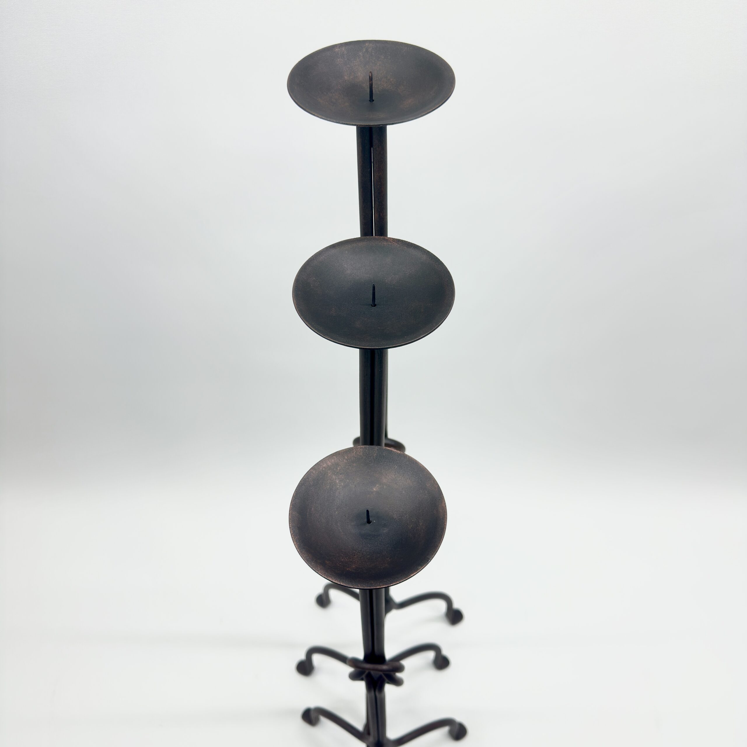 Hand Forged Wrought Iron Floor Candelabra 48″ (123cm) 3-Arm Candle Holder Antique Copper or Gold Patina Choice Rustic Wedding Decor