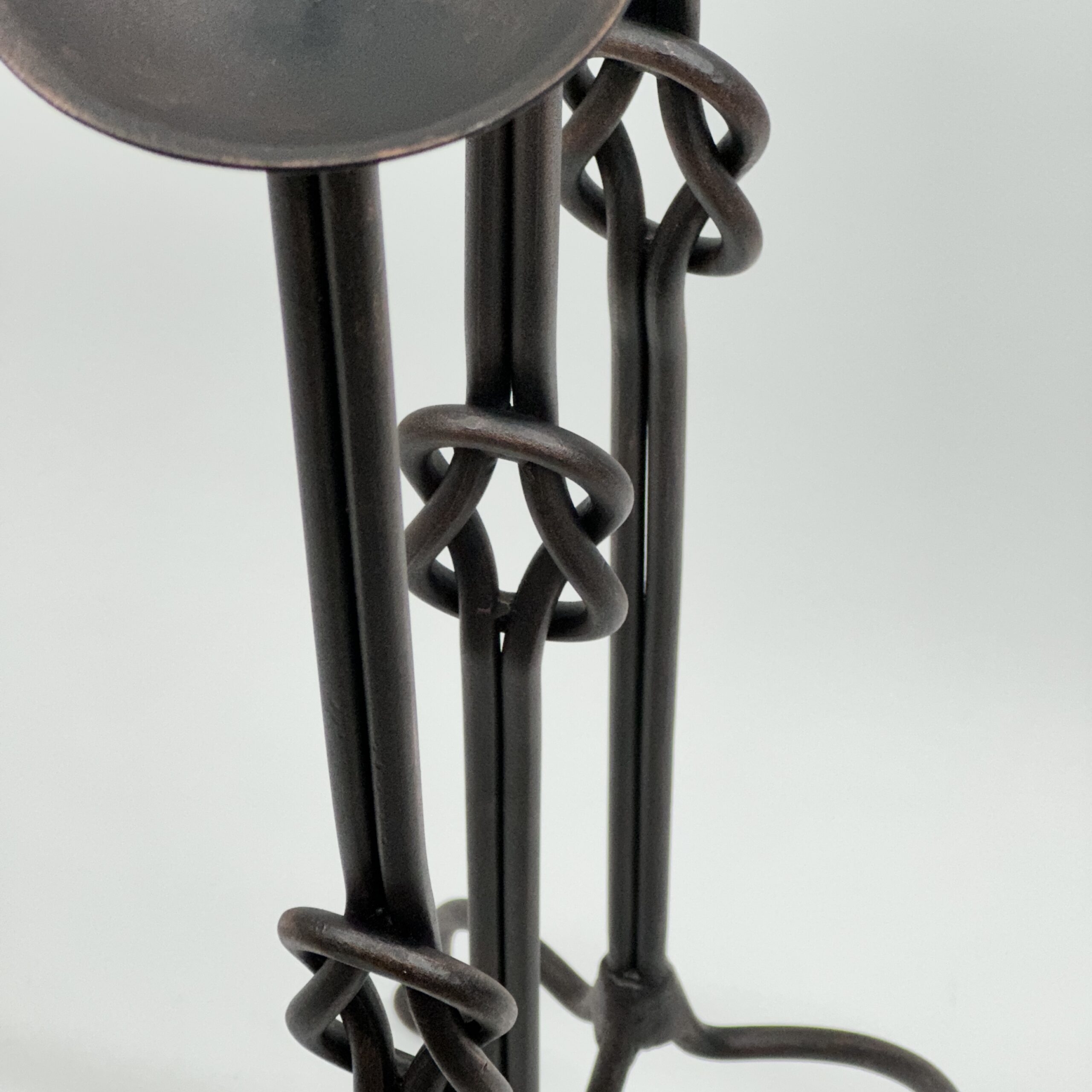 The Knot of Strength: At the heart of the stem, two iron rods are heated and tied into a Hercules Knot (Reef Knot). This isn’t just decoration; it’s a structural bond representing unbreakable connection and power.