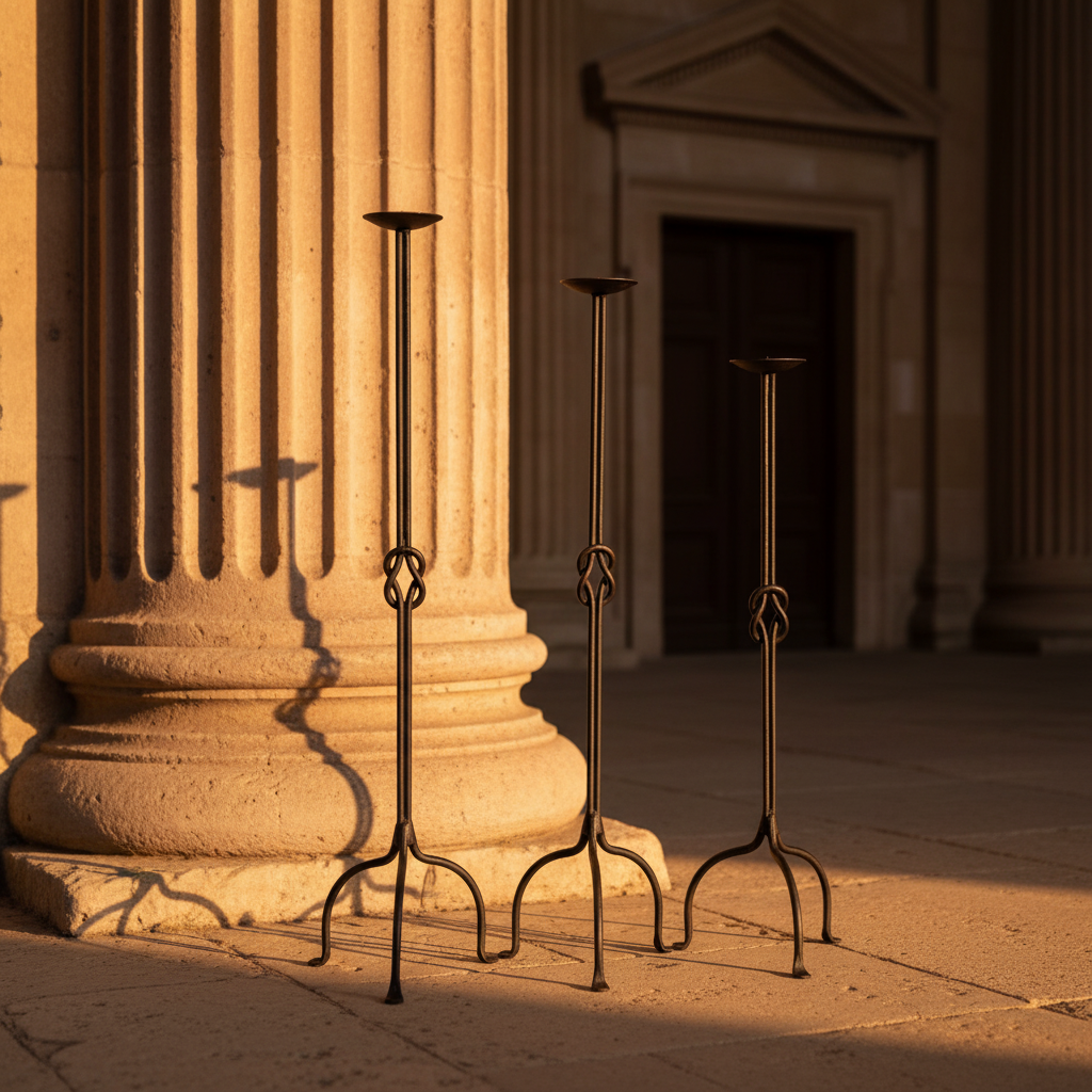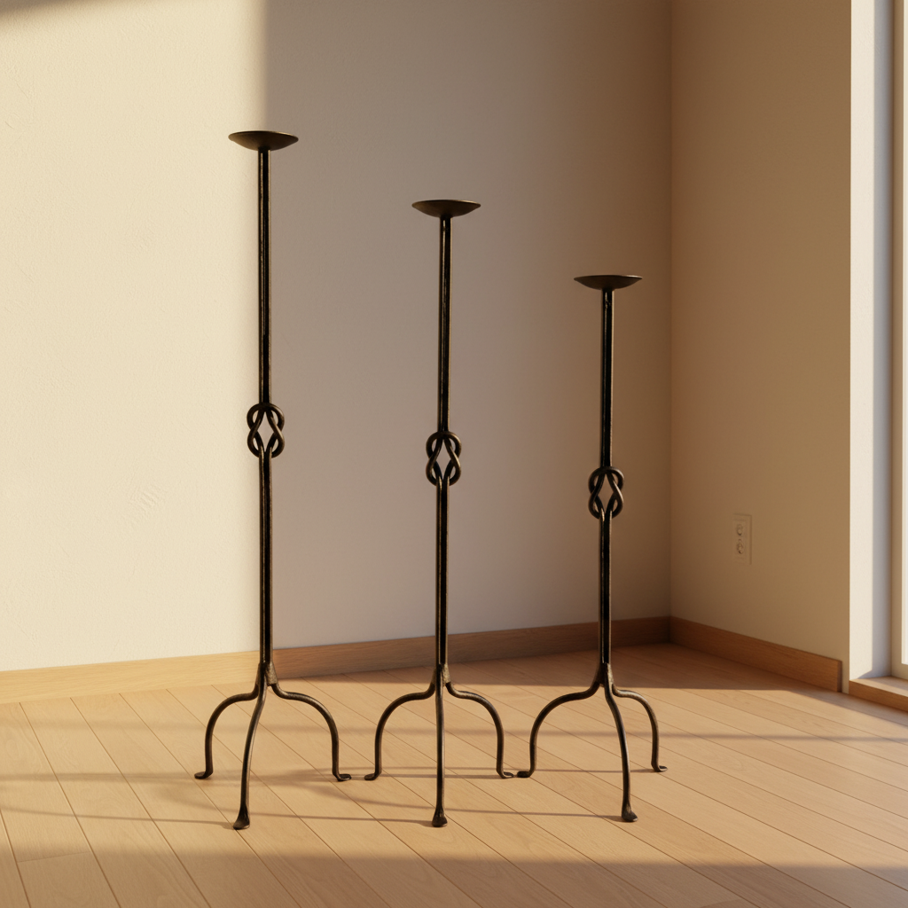 Combine the strength of ancient symbolism with the clean lines of modern design. This Hand-Forged Iron Set (102 cm, 92 cm, 82 cm) pairs the iconic Hercules Knot with our sleekest arched base.