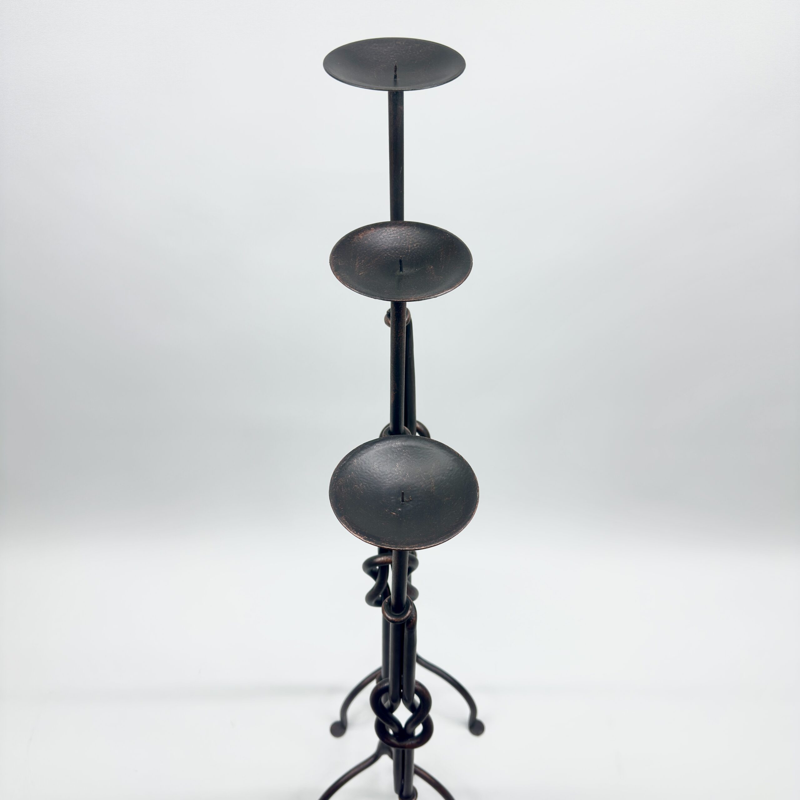 Hand Forged Iron Floor Candelabra 49″ (125cm) Antique Copper Patina 3-Arm Knot Detail Rustic Wedding Decor