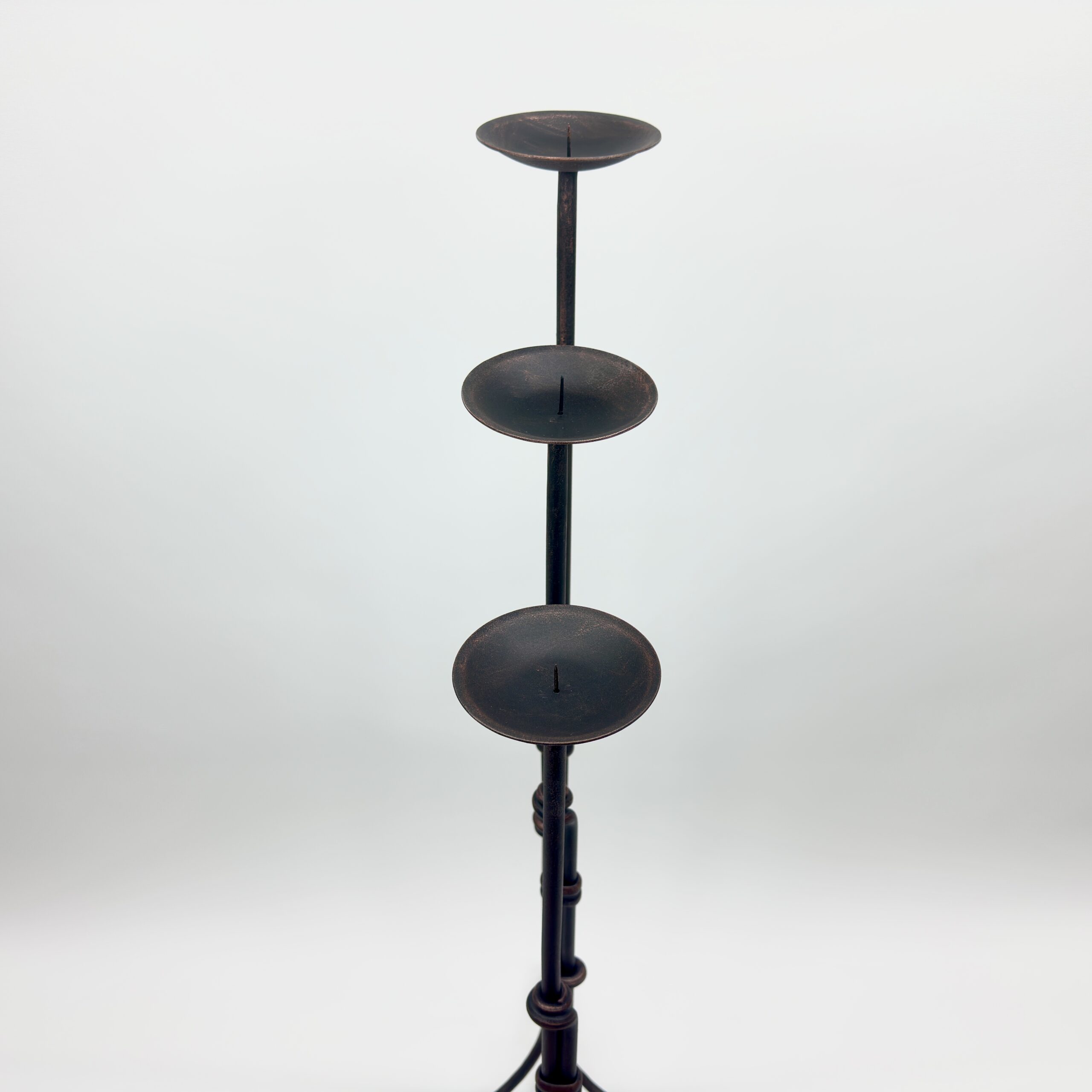 Hand Forged Wrought Iron Floor Candelabra 48″ (123cm) 3-Arm Candle Holder Antique Copper or Gold Patina Choice Rustic Wedding Decor