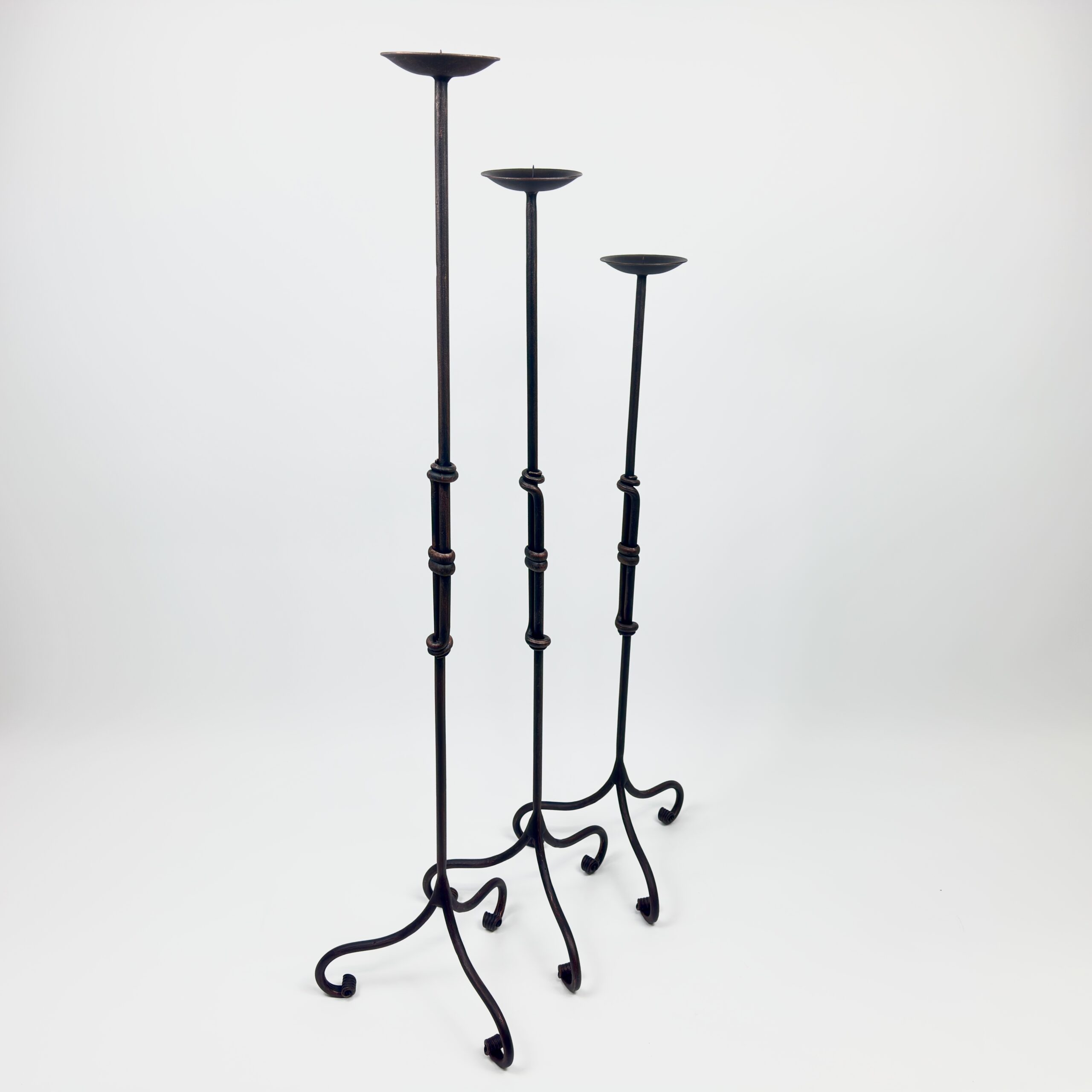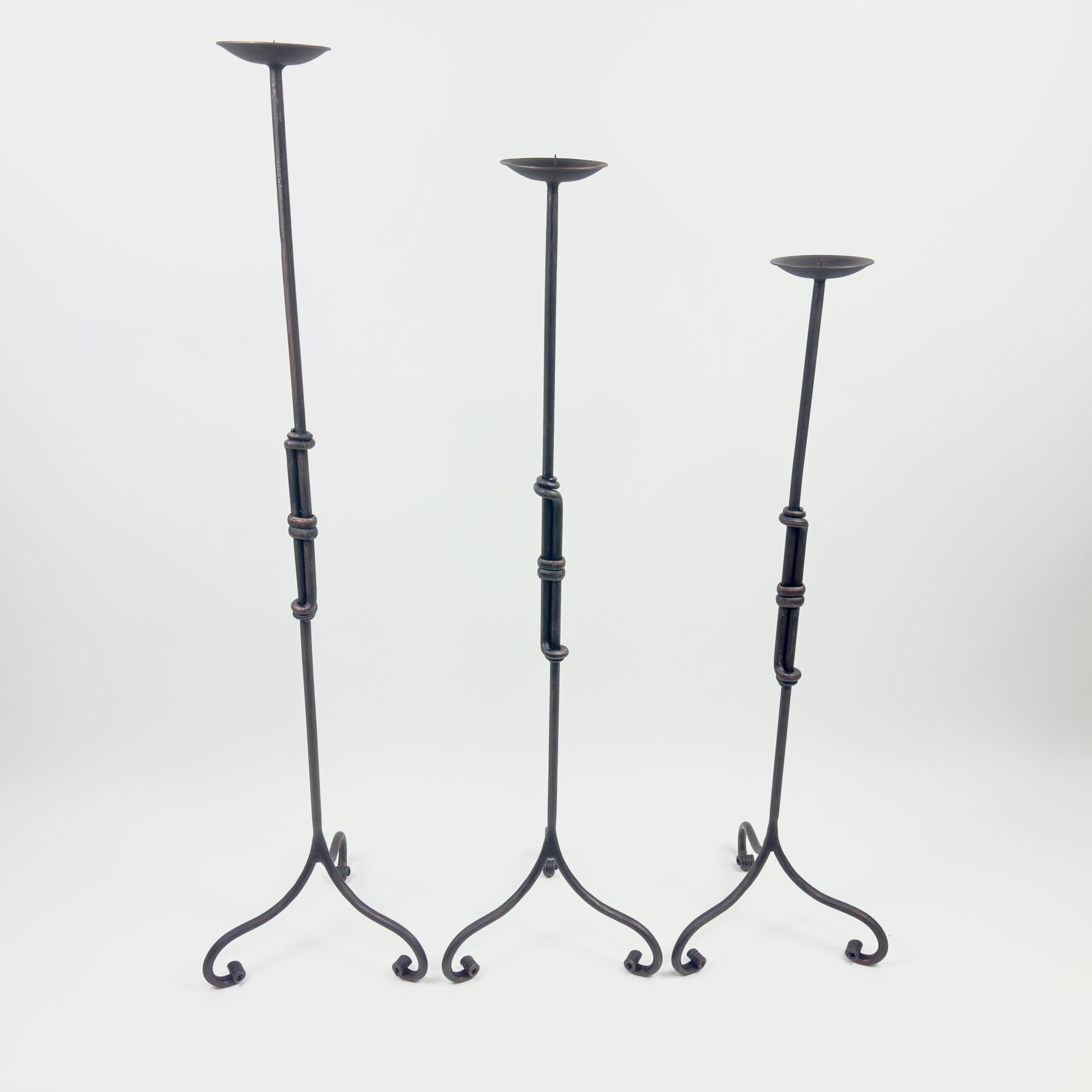 Hand Forged Iron Candelabra Set of 3 (90-110cm) Antique Copper Finish Iron Bamboo Stem with Scroll Base Estate Set
