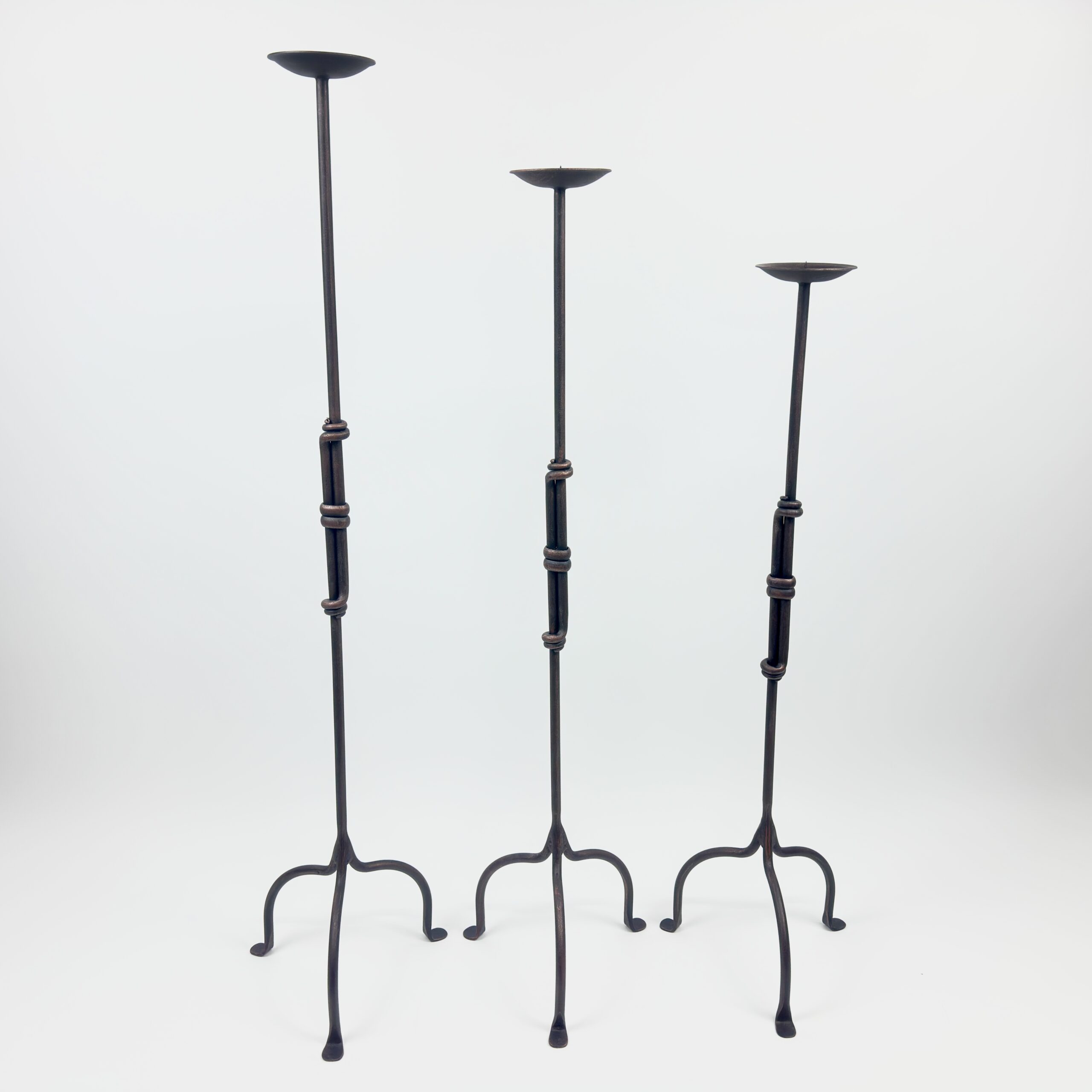 Introduce a touch of modern craftsmanship to your home with the 1092 Hand-Forged Iron Set. Standing at 110 cm, 100 cm, and 90 cm, this trio steps away from floral designs to embrace a more geometric, rhythmic beauty.