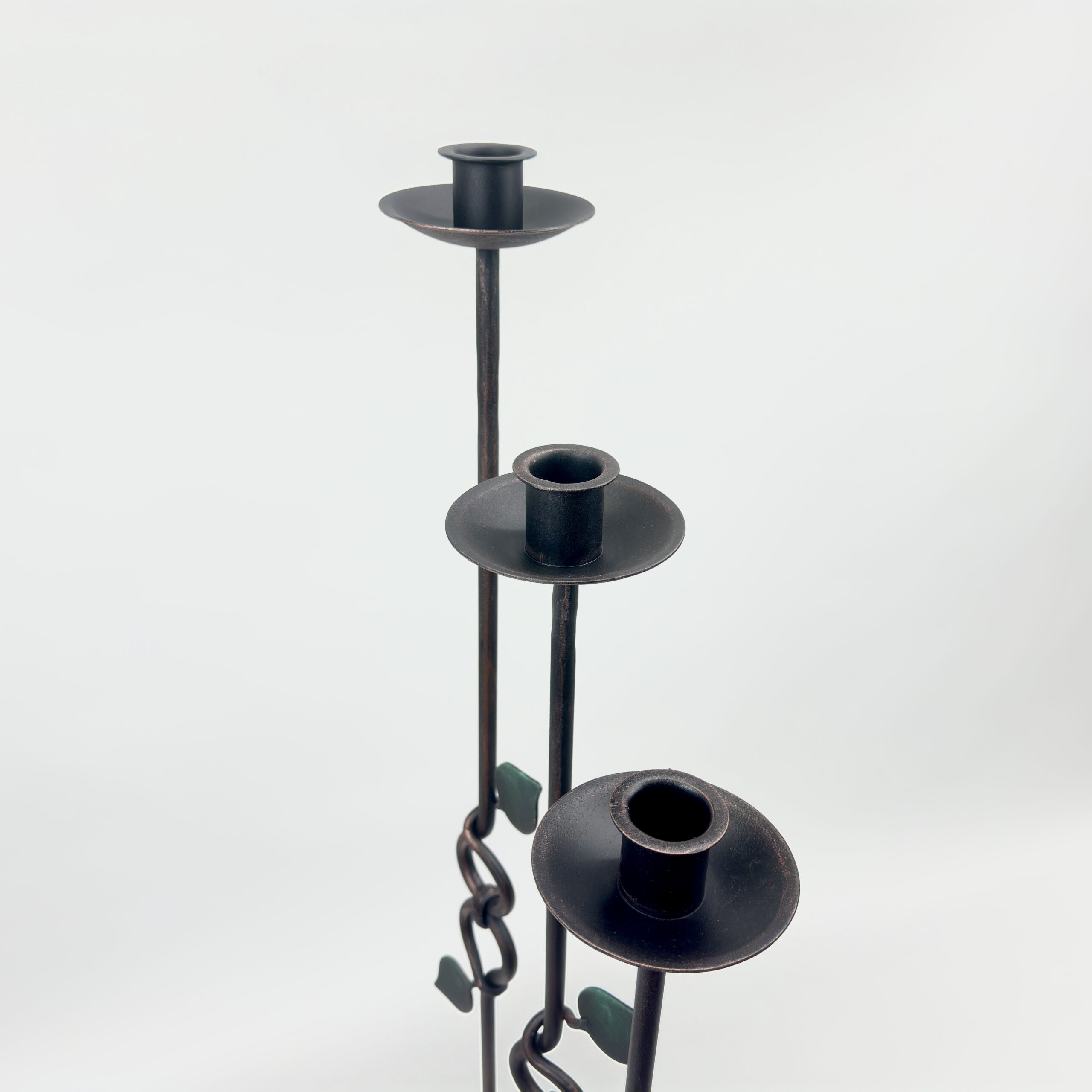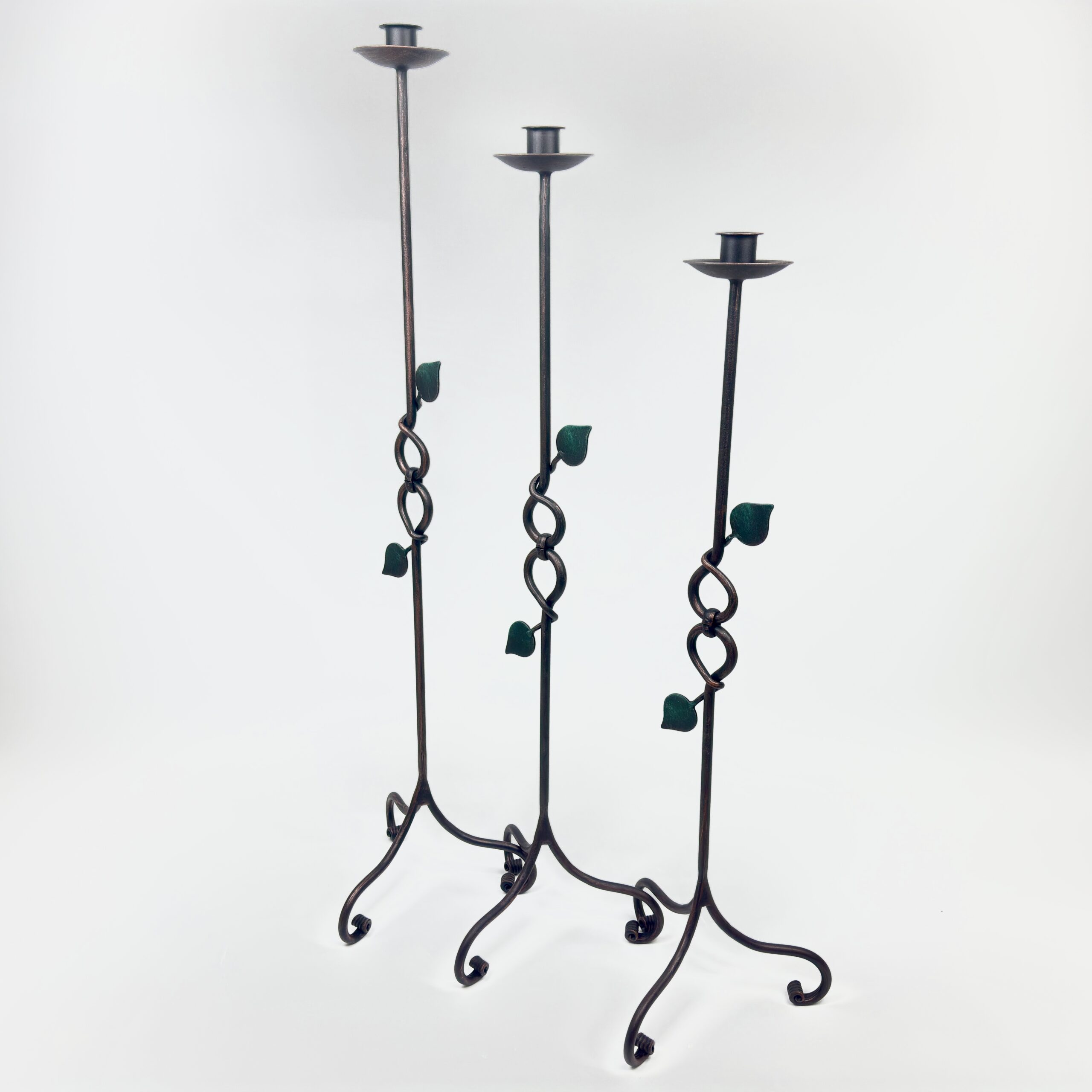Hand Forged Iron Candelabra Set of 3 (91-111cm) Antique Copper Finish Floor Standing Sculpted Twist & Leaf Node Estate Set