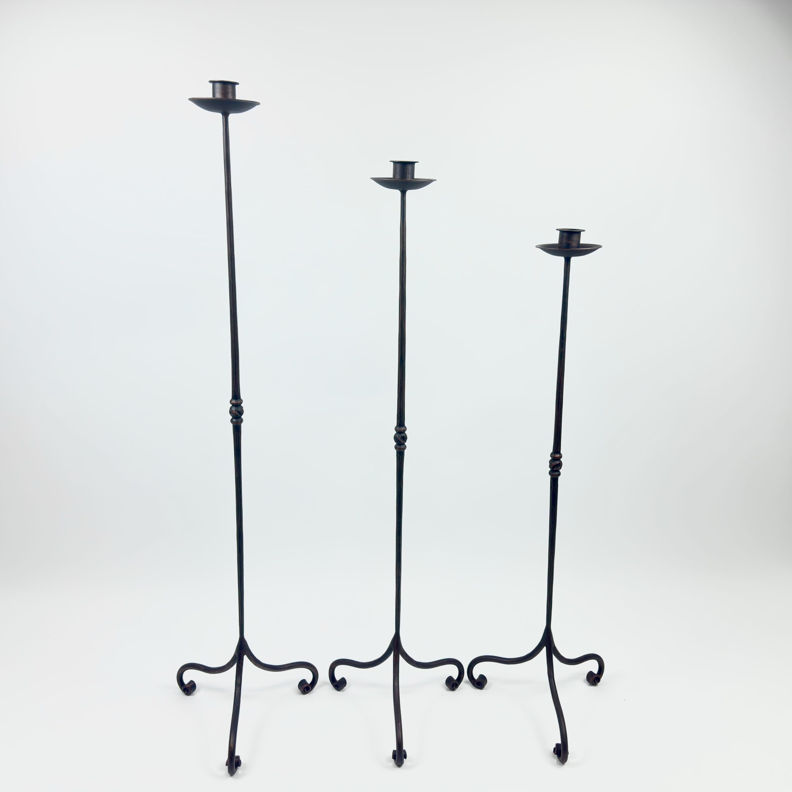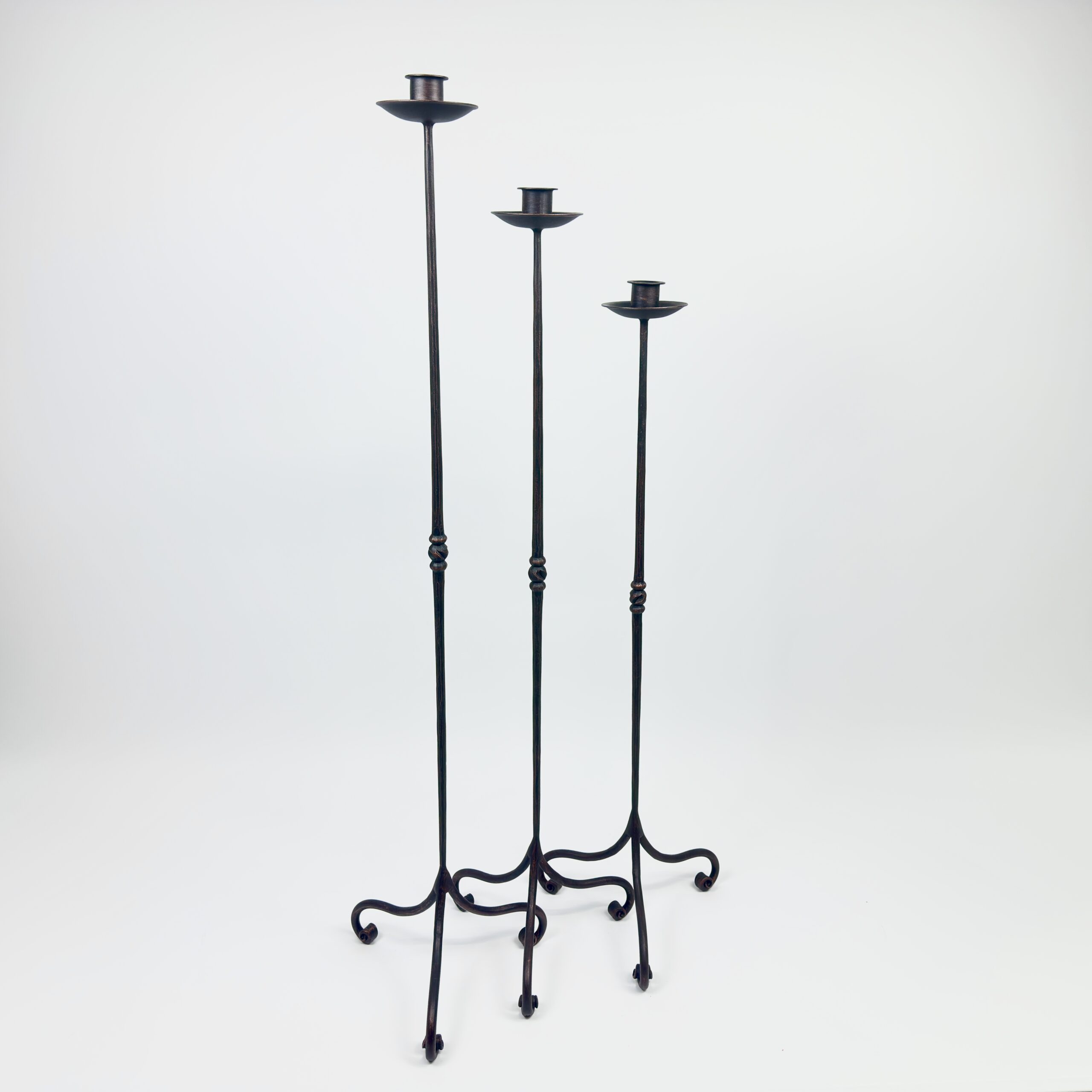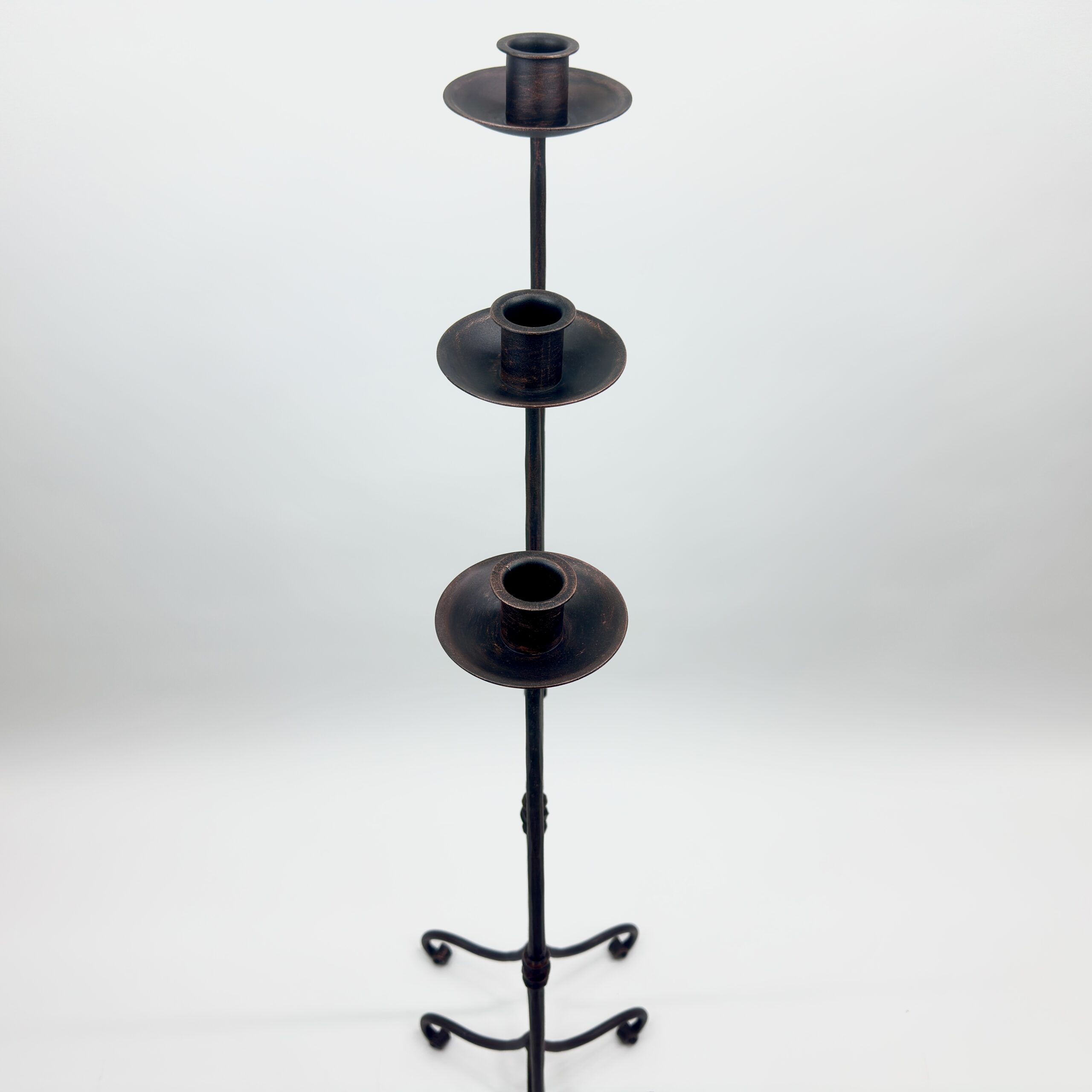 Hand Forged Iron Candelabra Set of 3 (91-111cm) Antique Copper Finish Straight Stem with Classic Scroll Feet