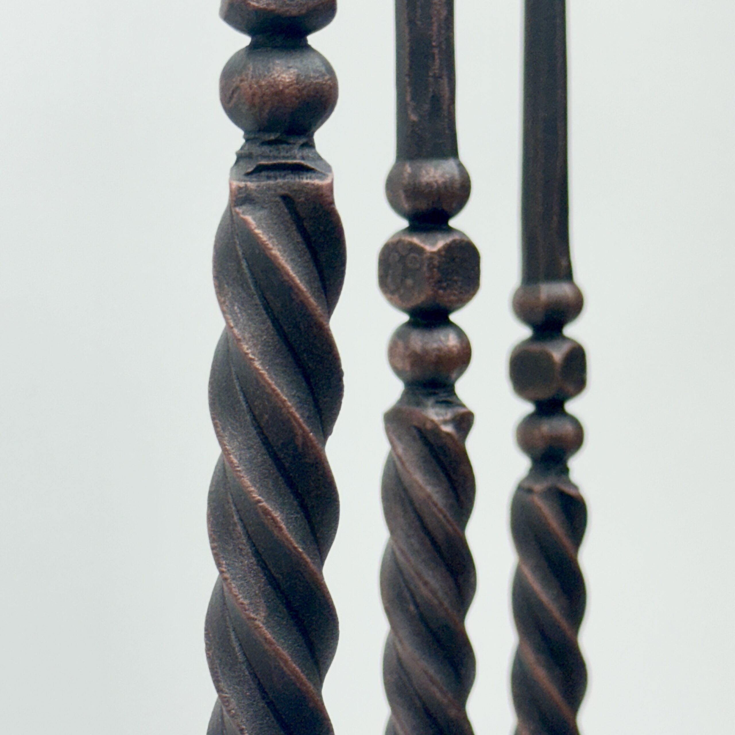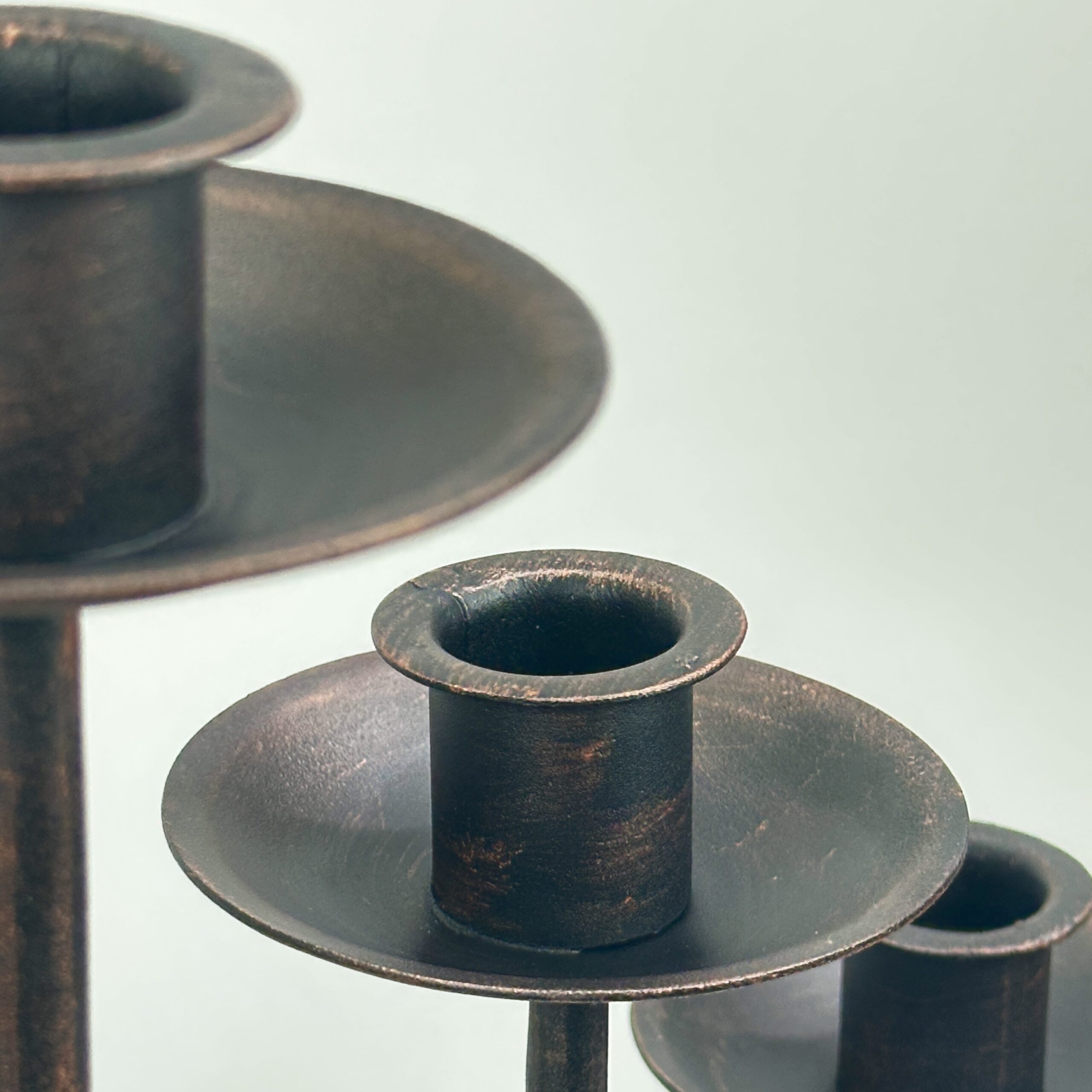 Hand Forged Iron Candelabra Set of 3 (93-113cm) Antique Copper Finish Barley Twist Stem with Deep Cylindrical Cups