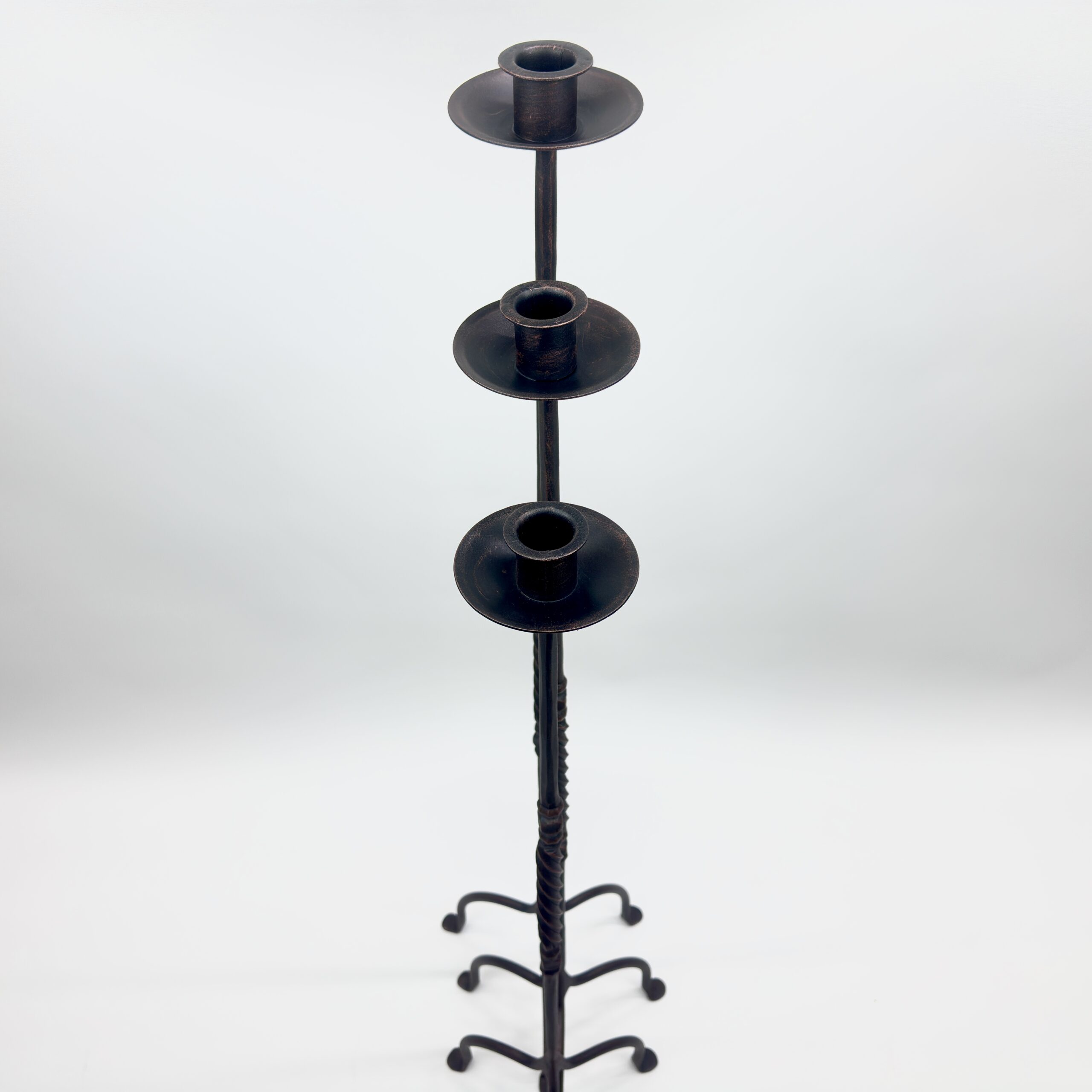 Hand Forged Iron Floor Candelabra 50.5″ (128cm) Antique Copper Patina 3-Arm Twist & Scroll Design Rustic Wedding Decor
