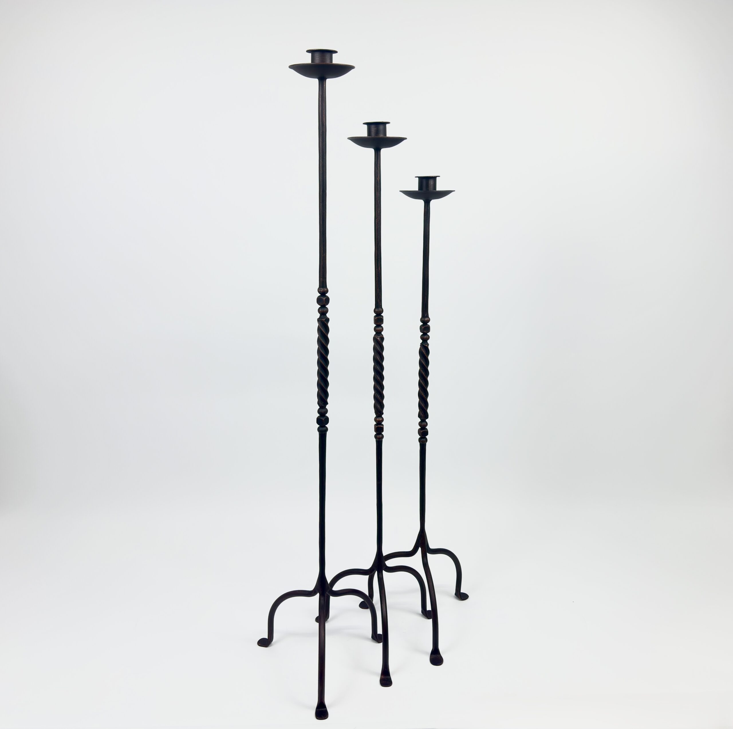 Embrace the security and style of traditional candlelight. This Hand-Forged Iron Set (113 cm, 103 cm, 93 cm) combines a classic aesthetic with functional design elements that keep your candles safe and straight.