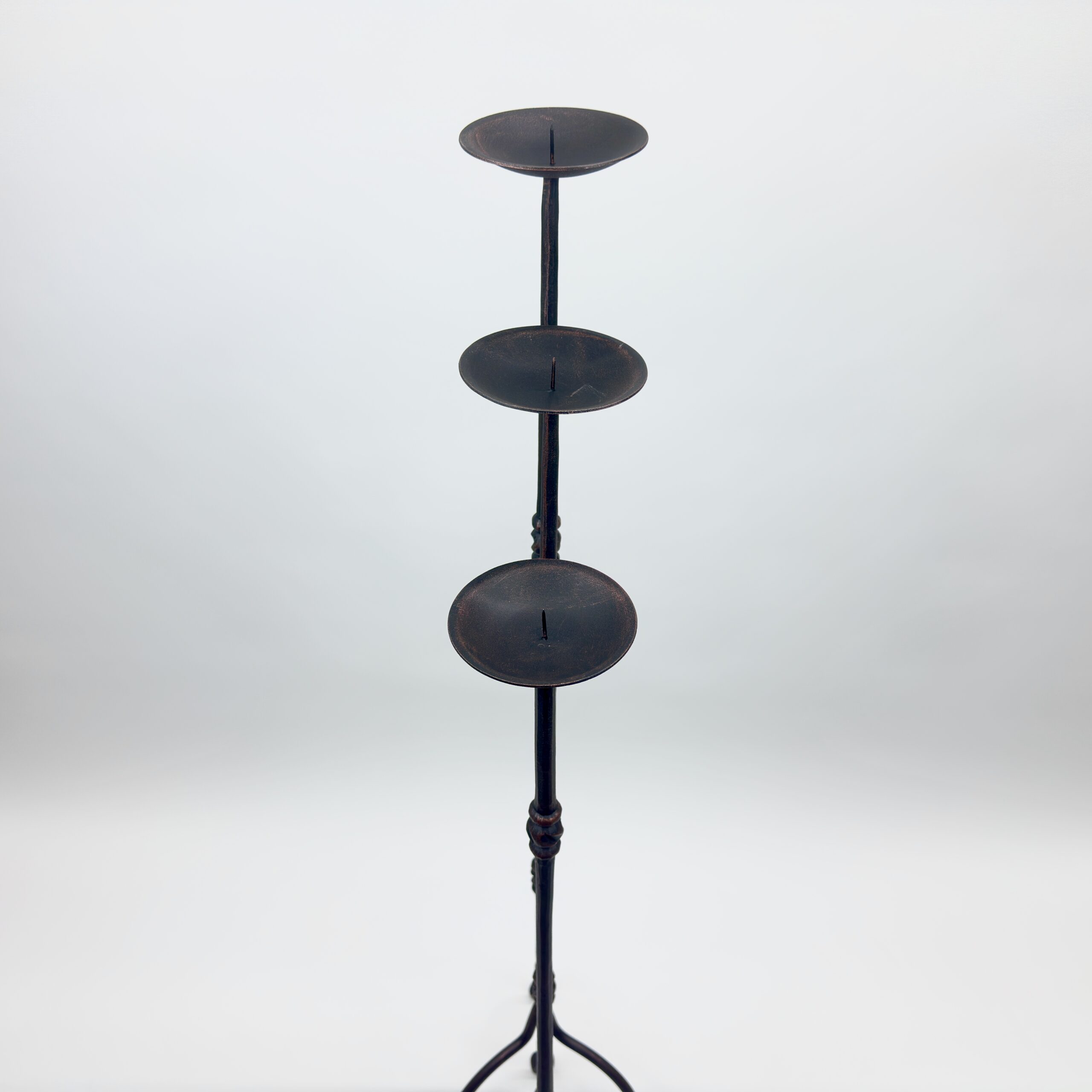Hand Forged Iron Candelabra Set of 3 (93-113cm) Antique Copper Finish Slender Stem with Compact Arched Base
