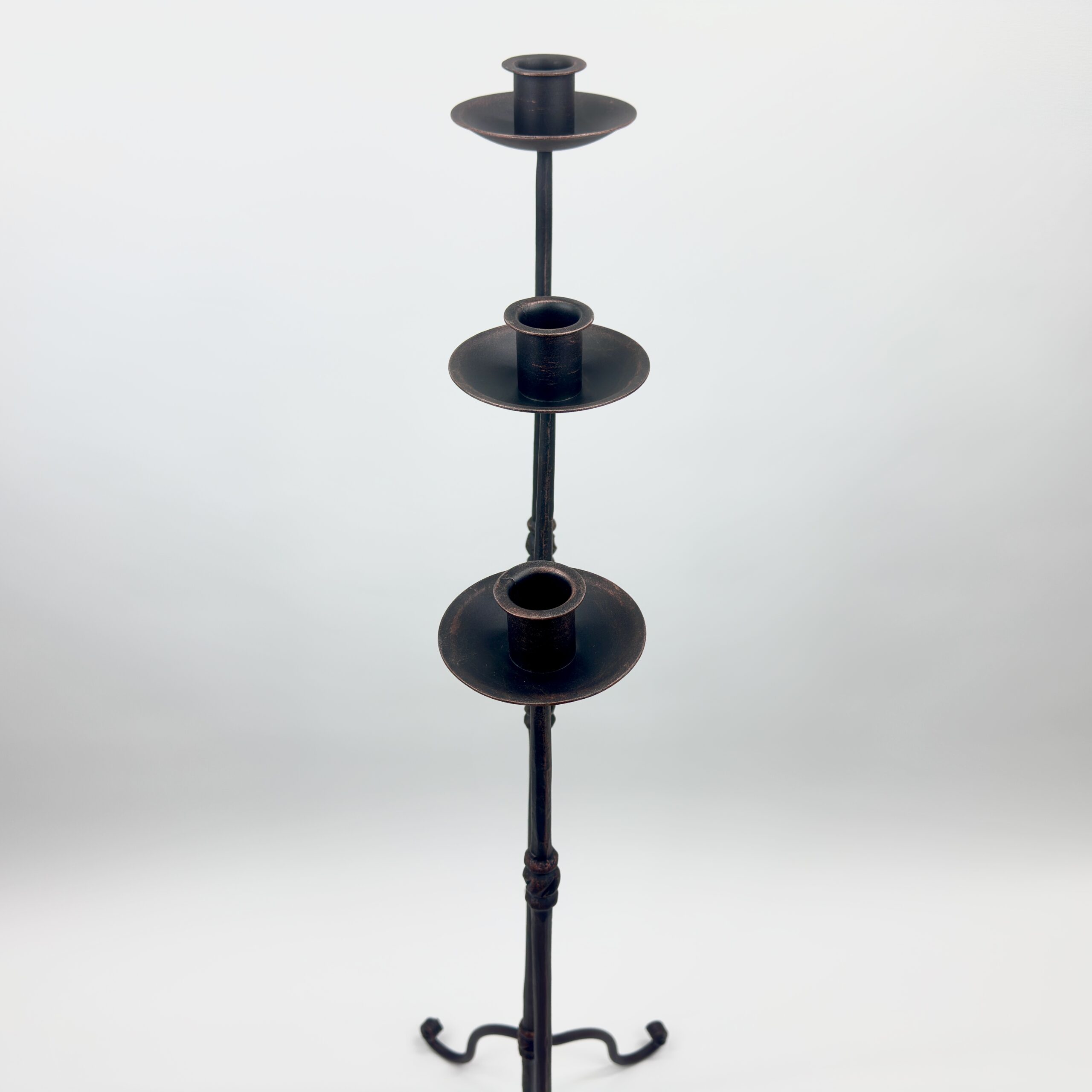 Hand Forged Wrought Iron Floor Candelabra 48″ (123cm) 3-Arm Candle Holder Antique Copper or Gold Patina Choice Rustic Wedding Decor