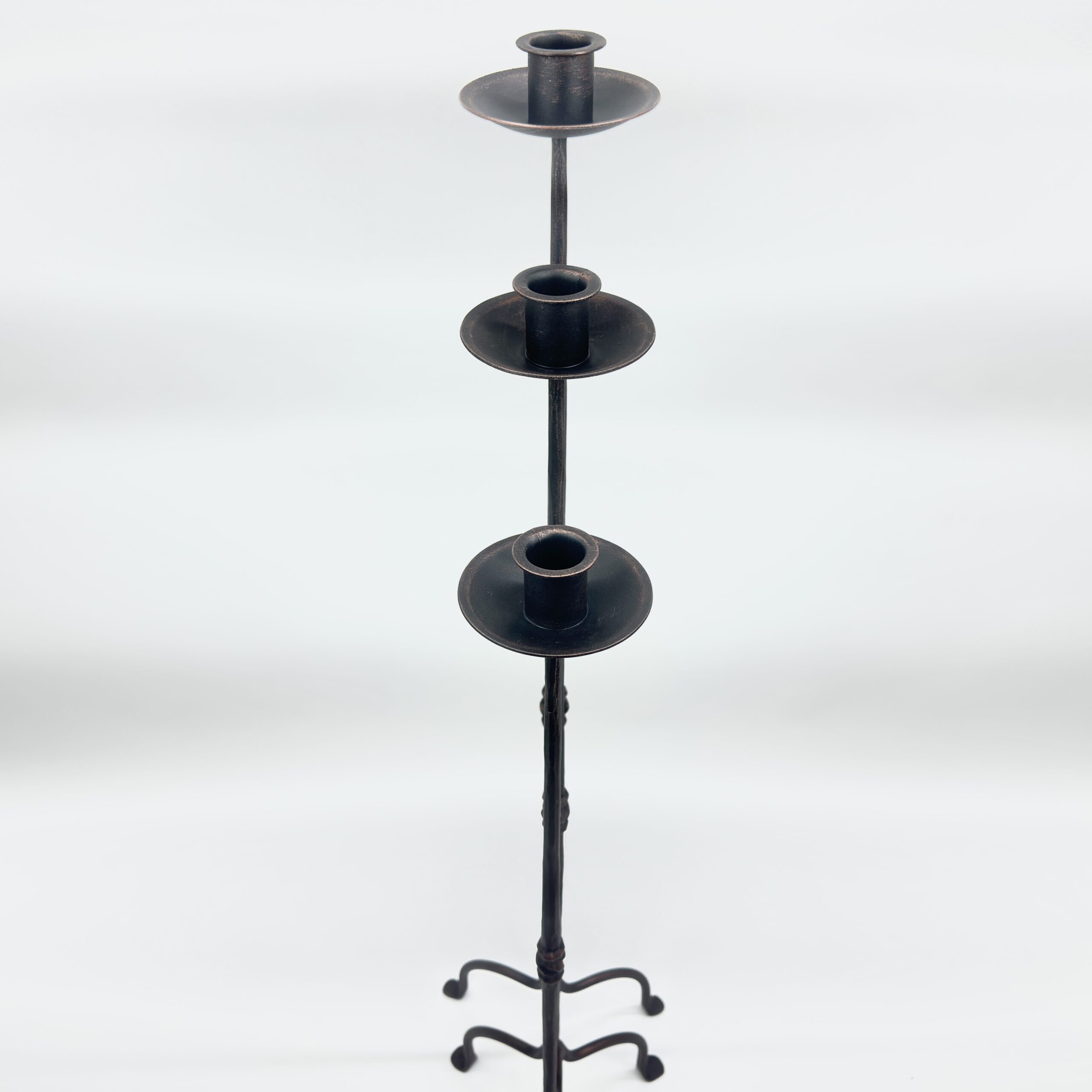 Hand Forged Iron Candelabra Set of 3 (94-114cm) Antique Copper Finish Twisted Stem with Simple Tripod Base