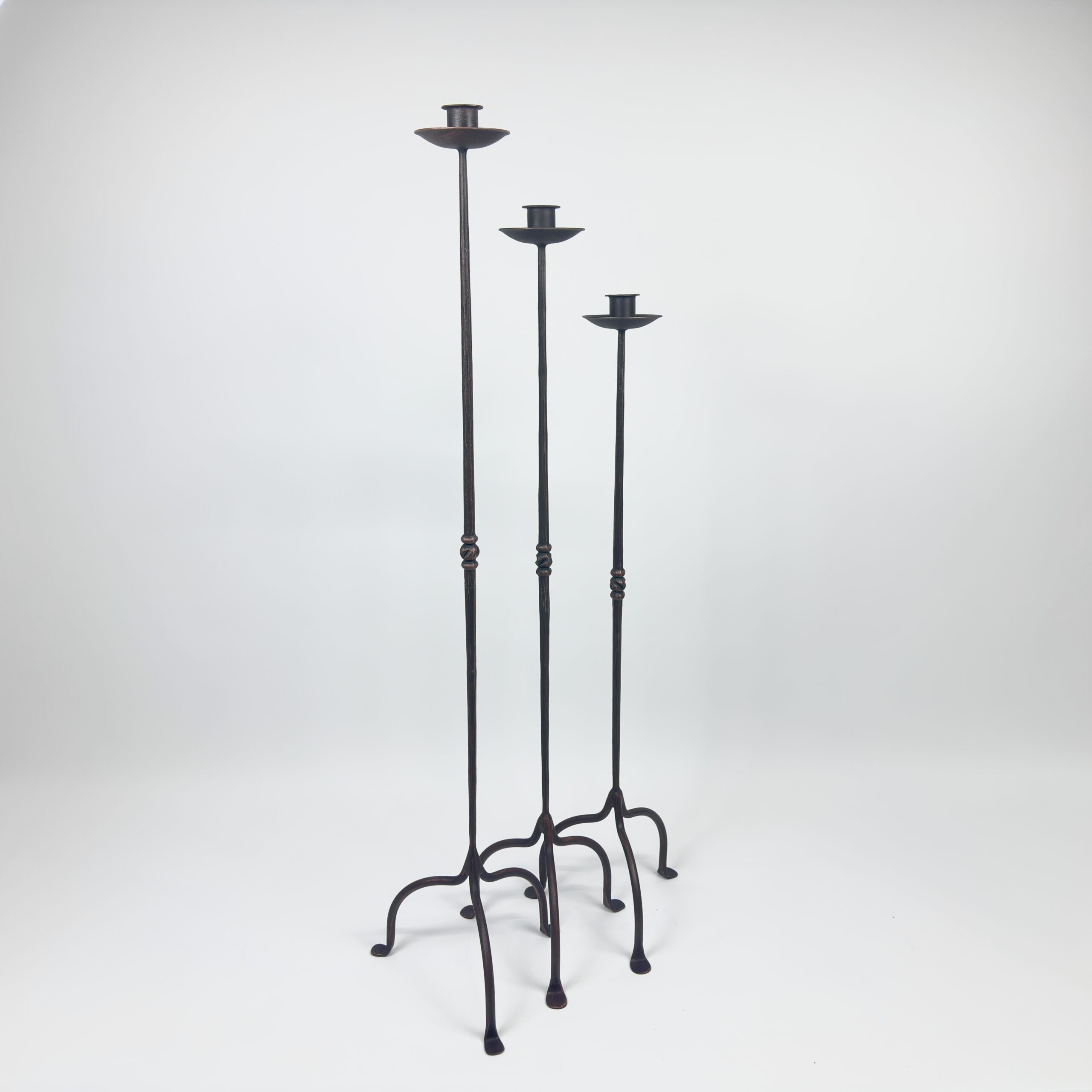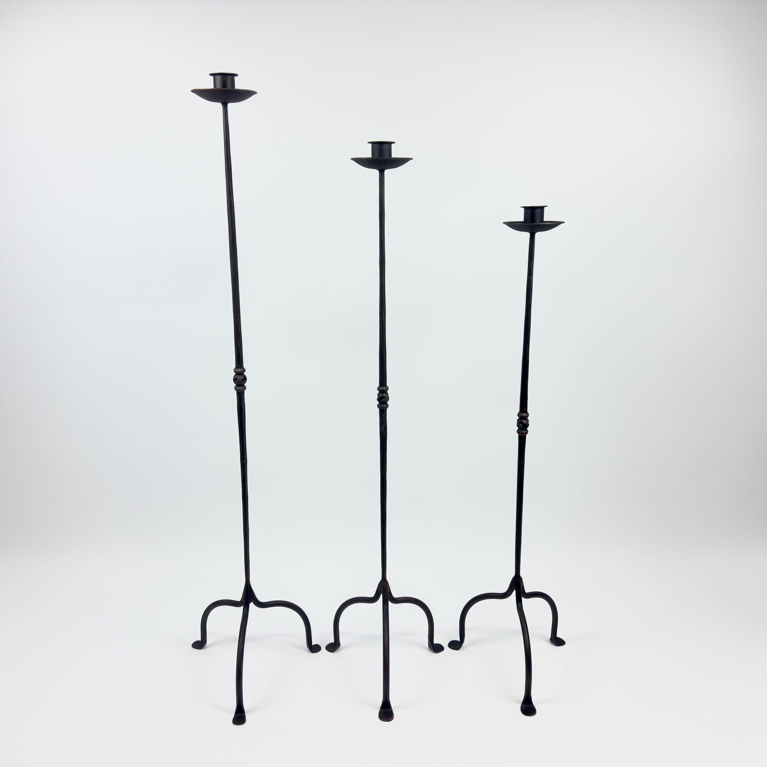 Simplicity is the ultimate sophistication. This Hand-Forged Iron Set (114 cm, 104 cm, 94 cm) combines our popular twisted stem with our most understated base design.
